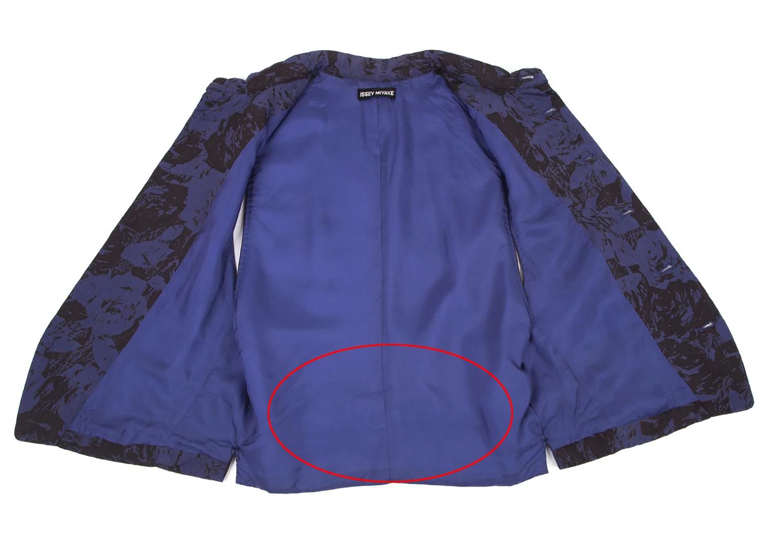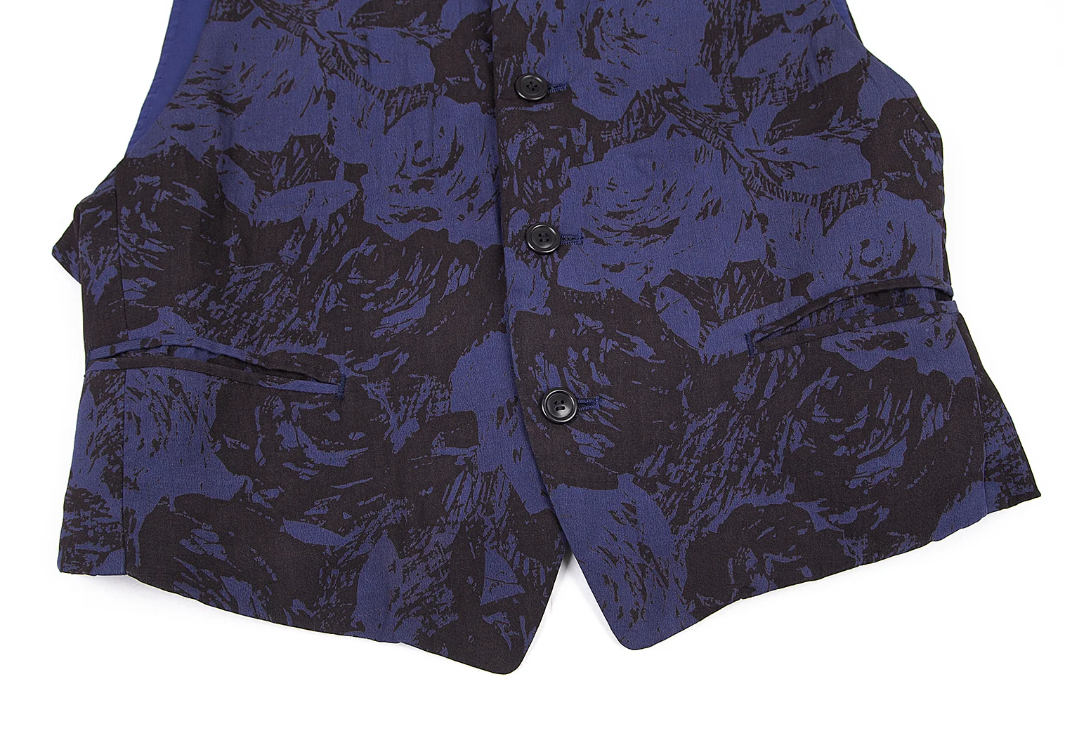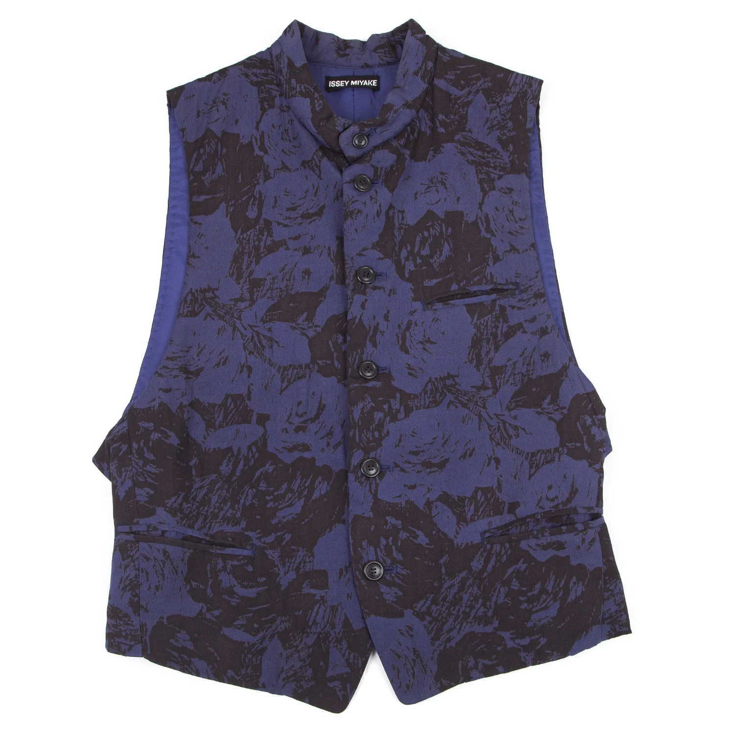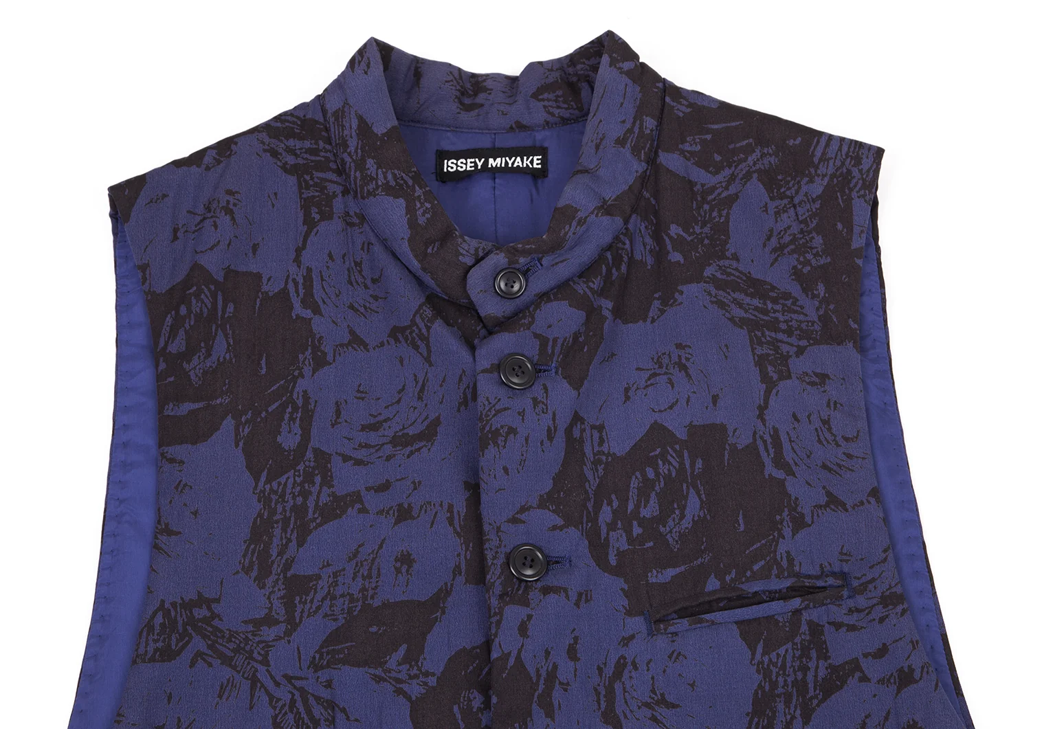 イッセイミヤケ メンISSEY MIYAKE MEN ローズプリントスタンドカラー中綿ベスト 紫黒XL
