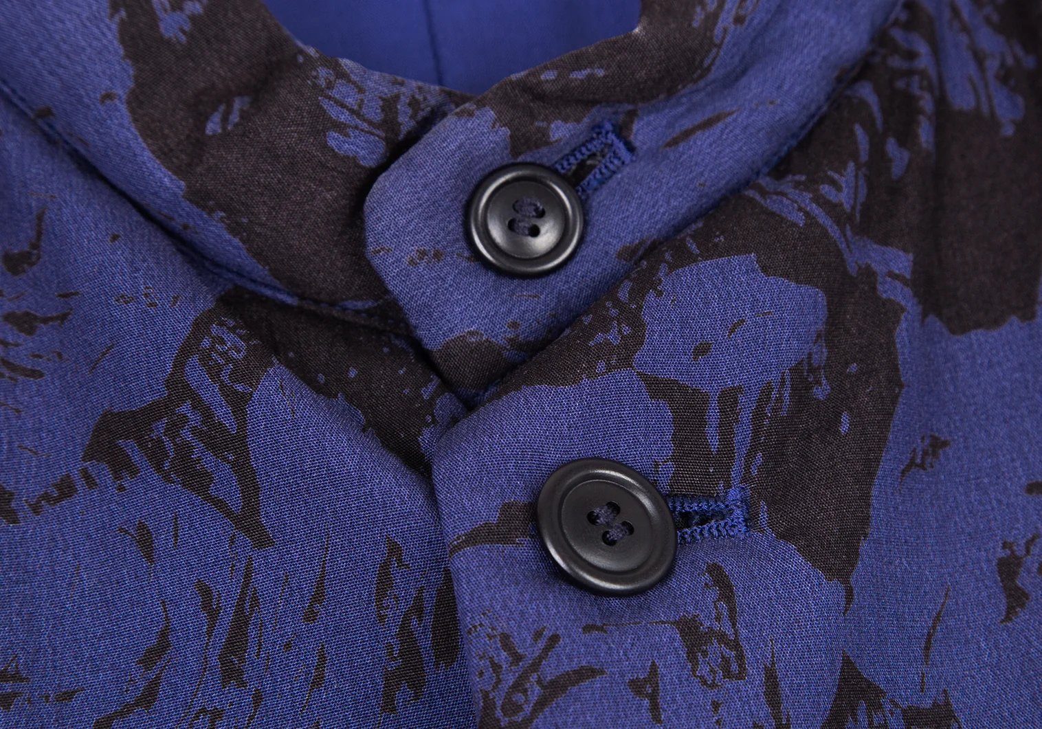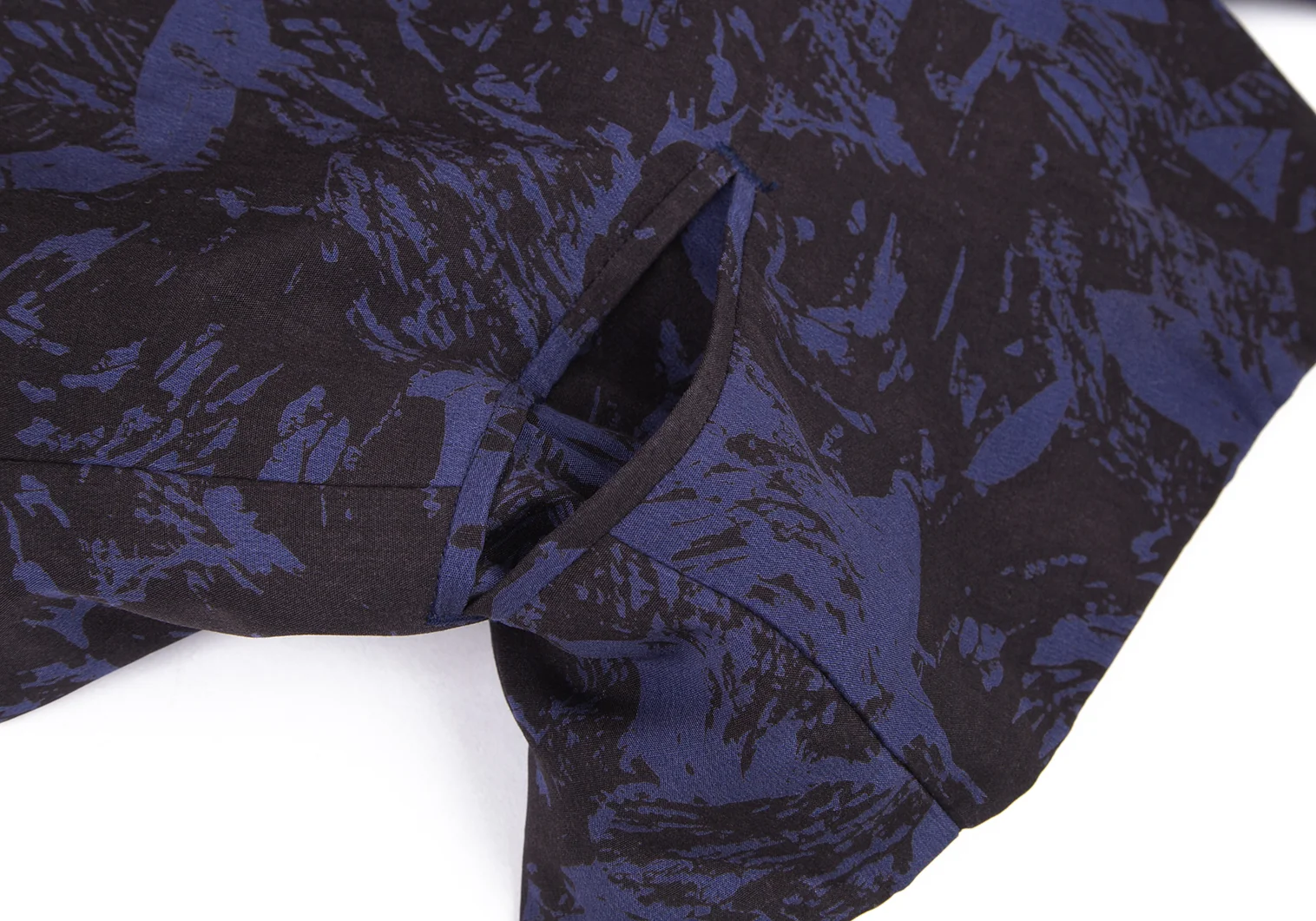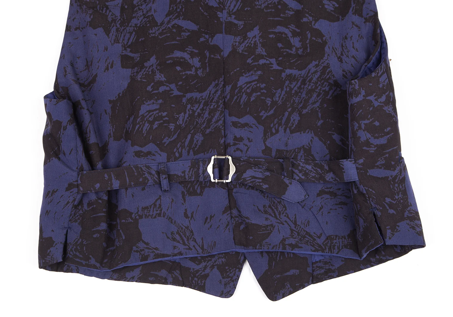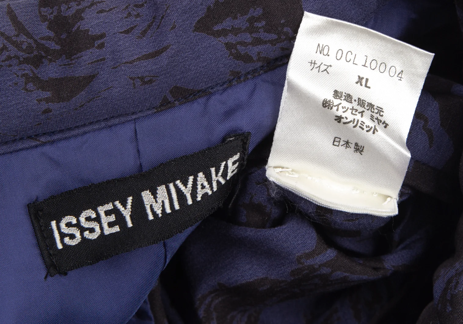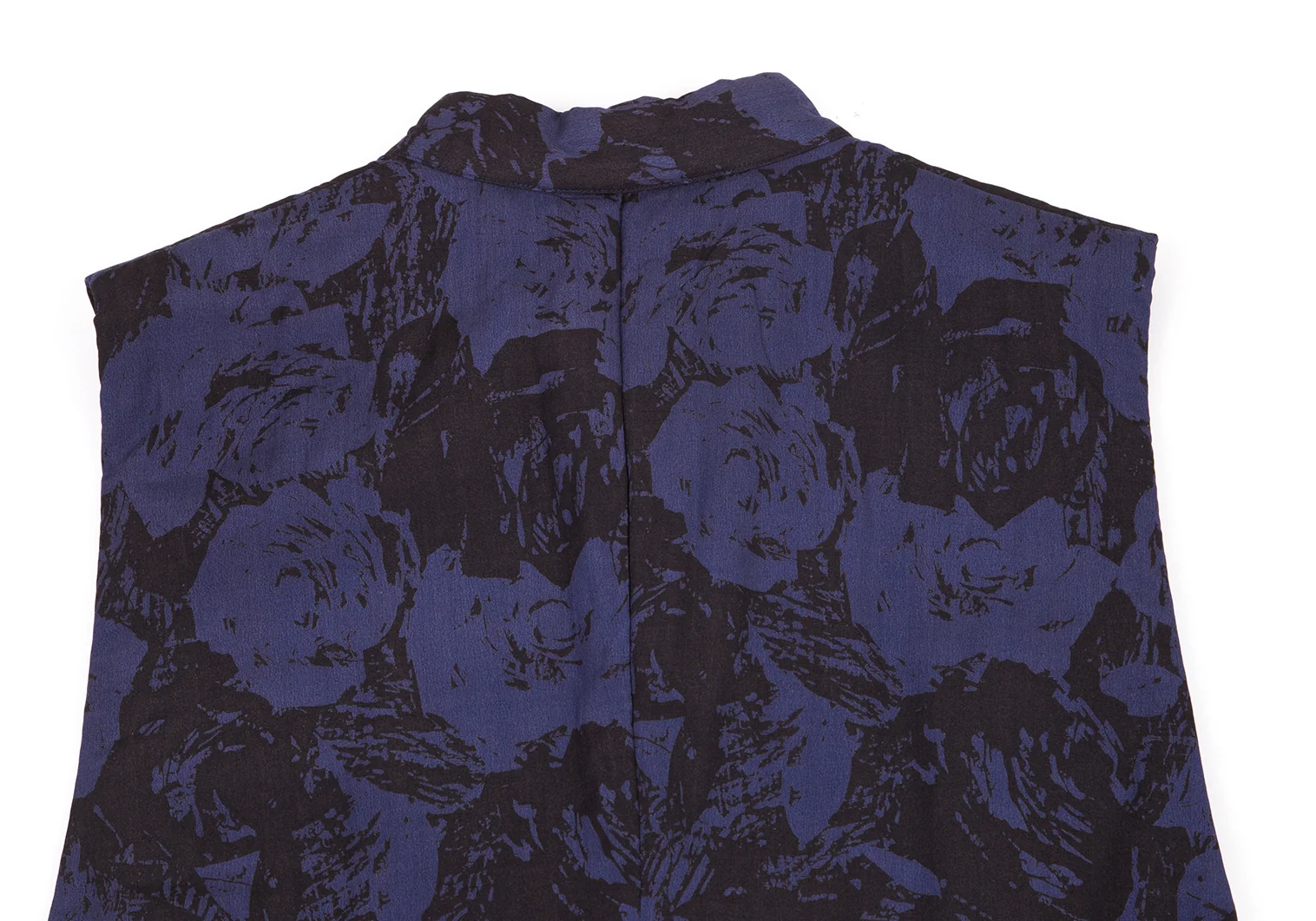 イッセイミヤケ メンISSEY MIYAKE MEN ローズプリントスタンドカラー中綿ベスト 紫黒XL