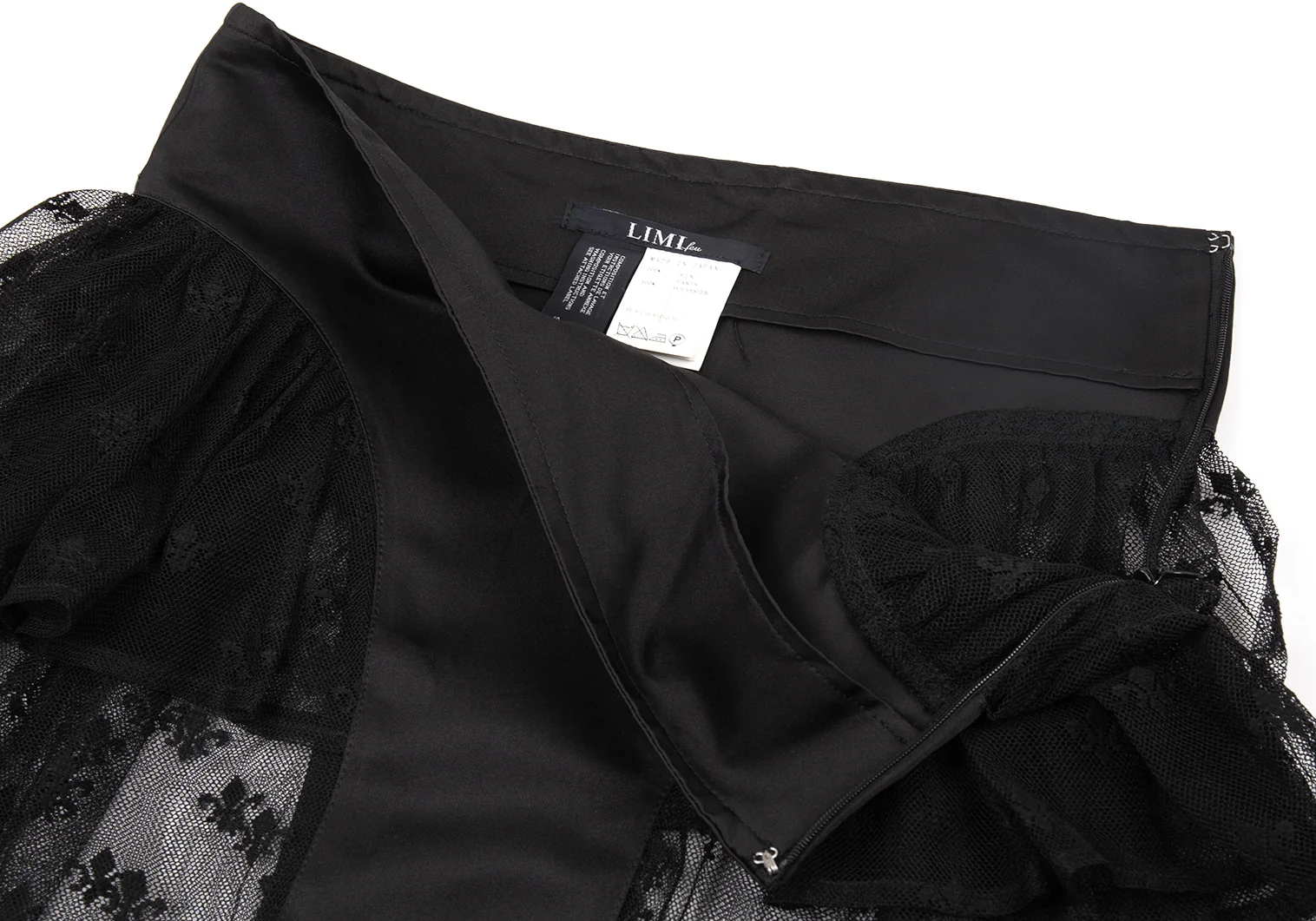 リミフゥLIMI feu チュール切り替えシルクシャイニーカバースカート 黒S