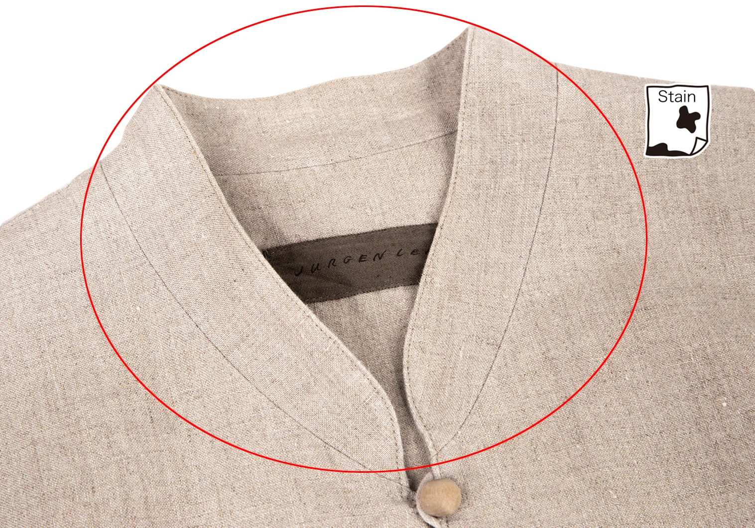 首周りに薄シミ、前に色ムラがあります(写真参照)。その他に目立ったシミ、汚れ、ほつれ等はありません。クリーニング済み