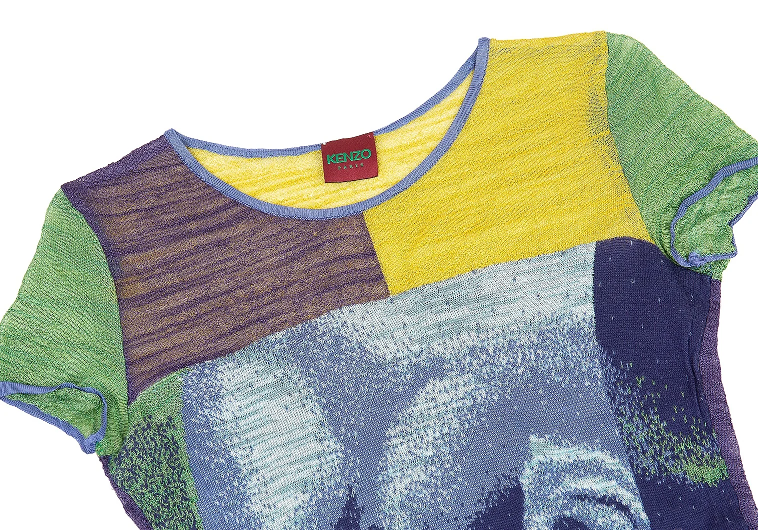 ケンゾーKENZO パネル切替半袖ニット マルチM位