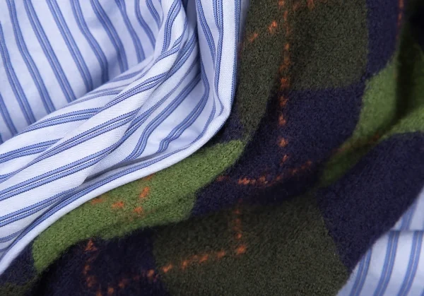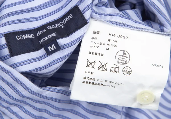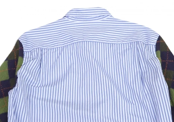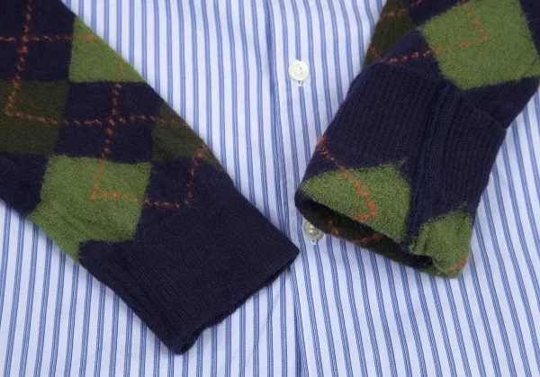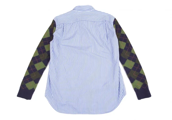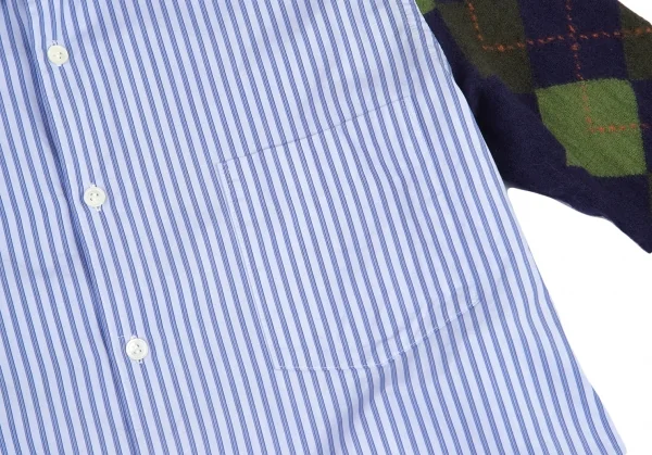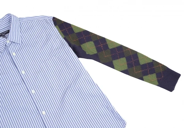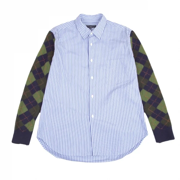 コムデギャルソン オムCOMME des GARCONS HOMME 袖アーガイルニット切替ストライプシャツ 水色他M