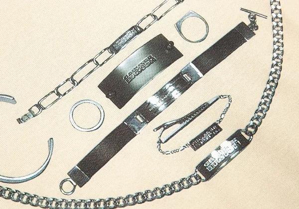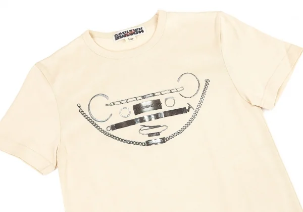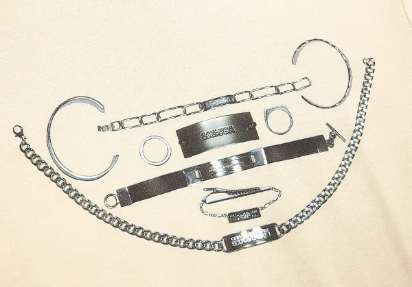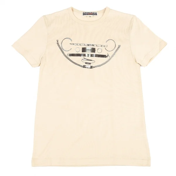 ジャンポールゴルチエ オムオブジェJean Paul GAULTIER HOMME objet シルバーアクセサリープリントTシャツ ベージュfree(S位)