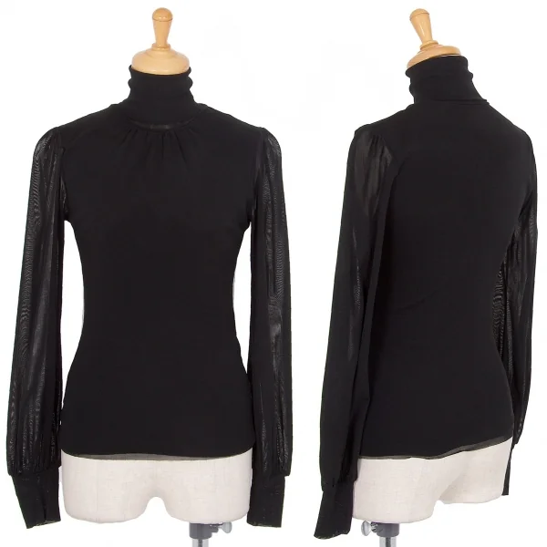ヴィヴィアンタムVIVIENNETAM タートルネックギャザーパワーネット長袖カットソー 黒XS