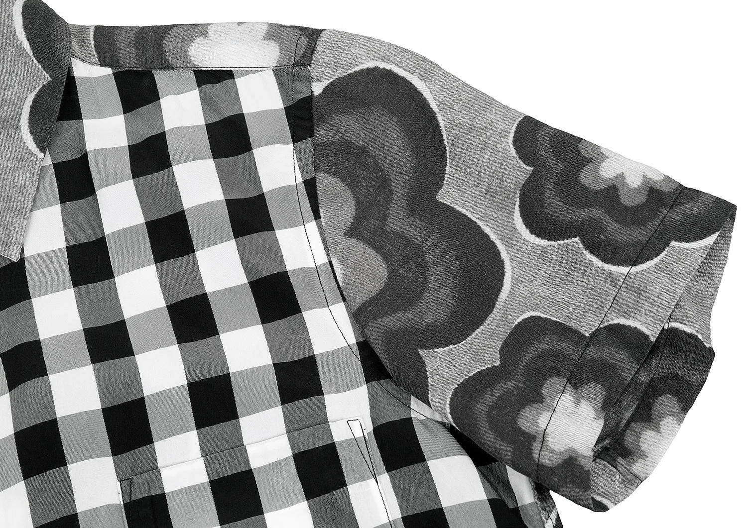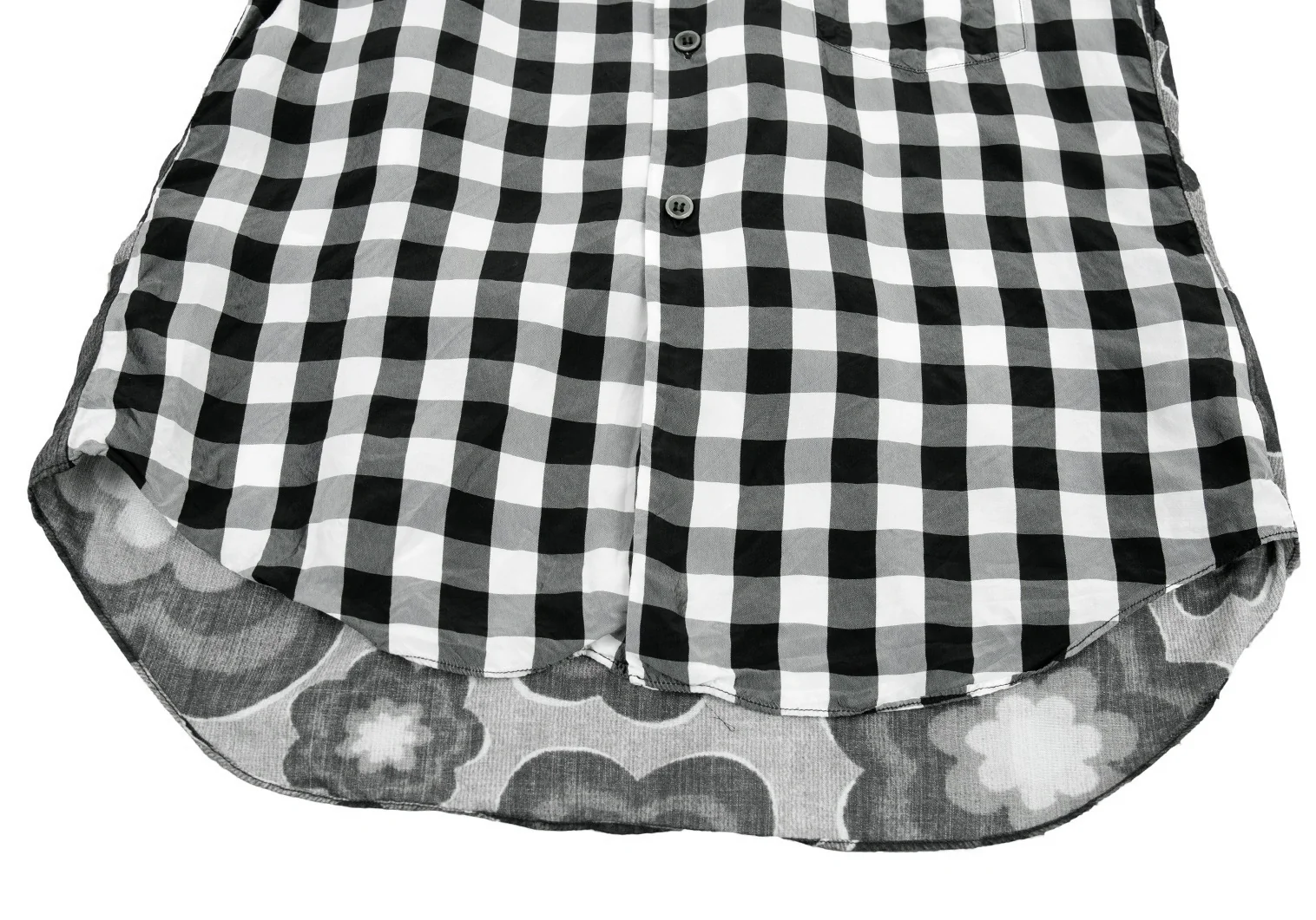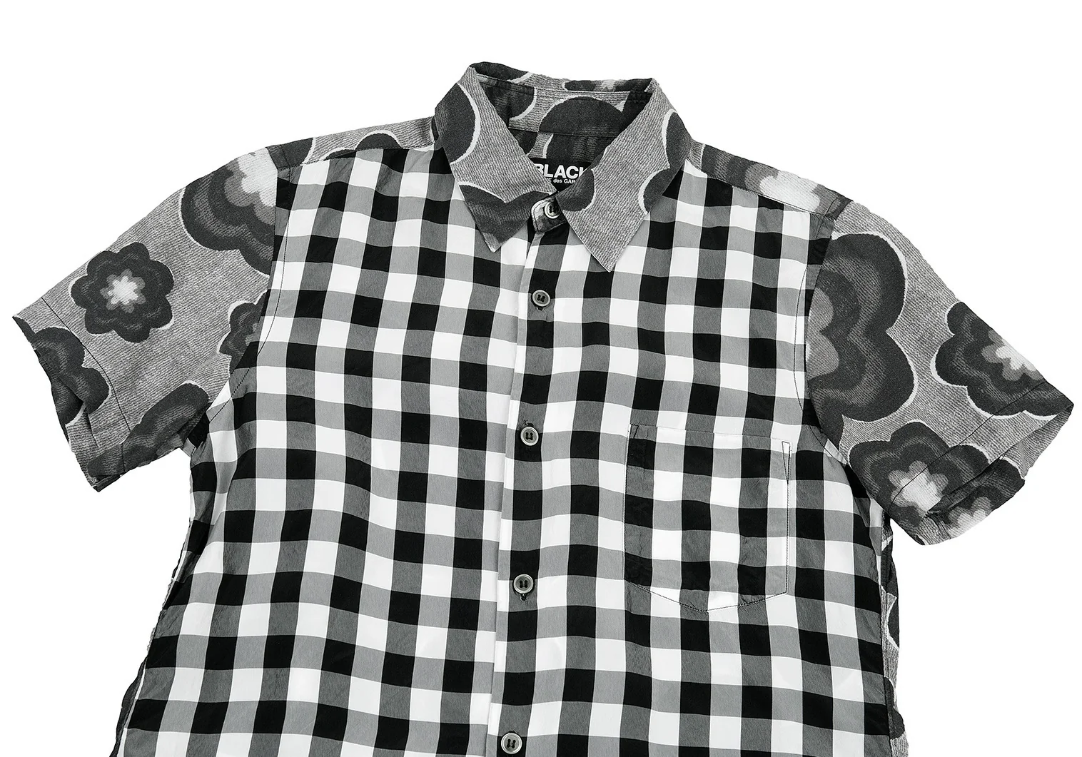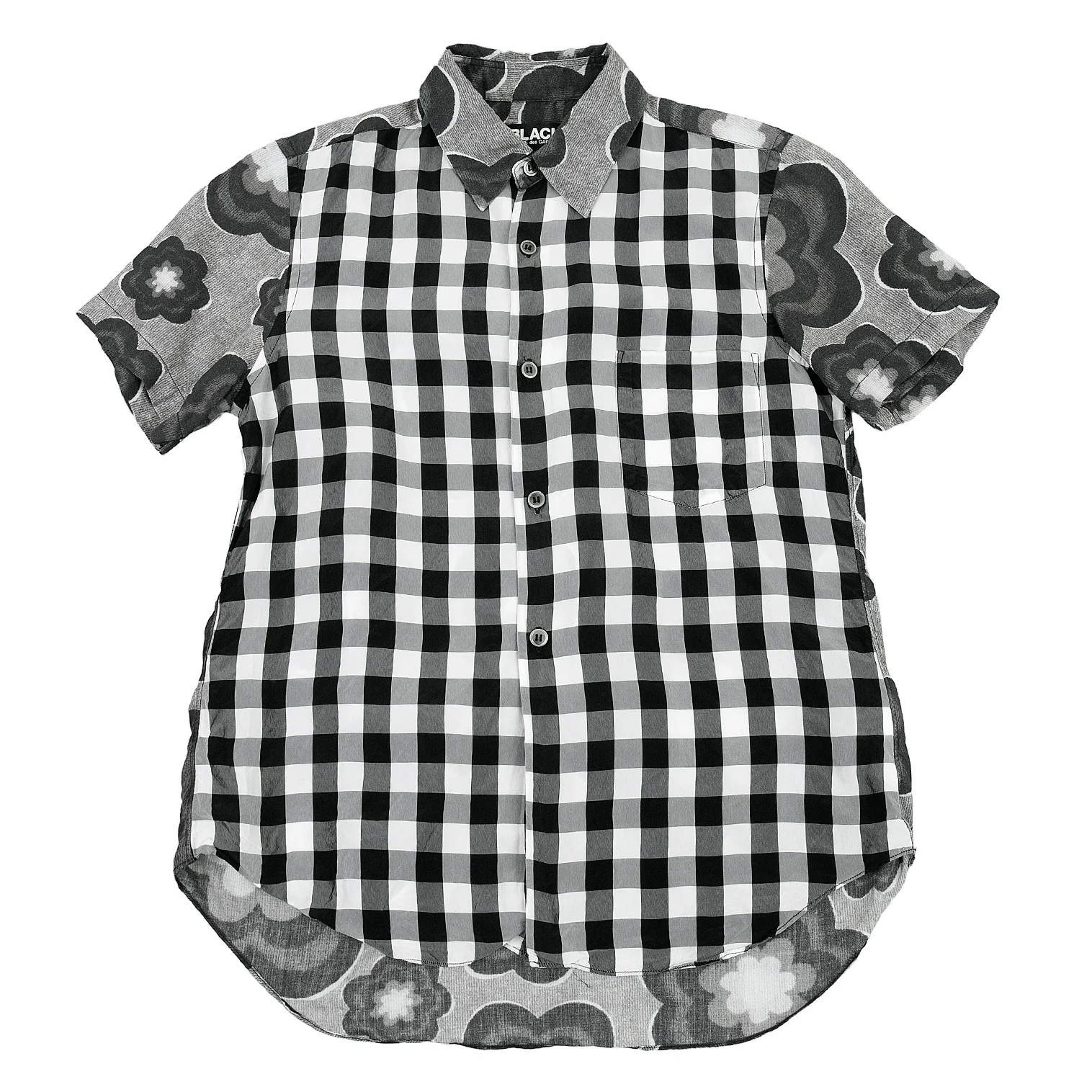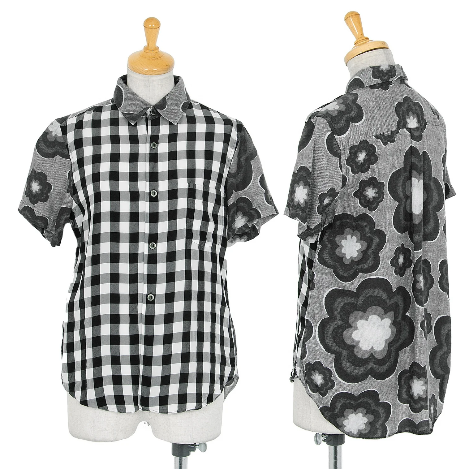 ブラックコムデギャルソンBLACK COMME des GARCONS 異素材チェック切り替えフラワープリント半袖シャツ 黒XS