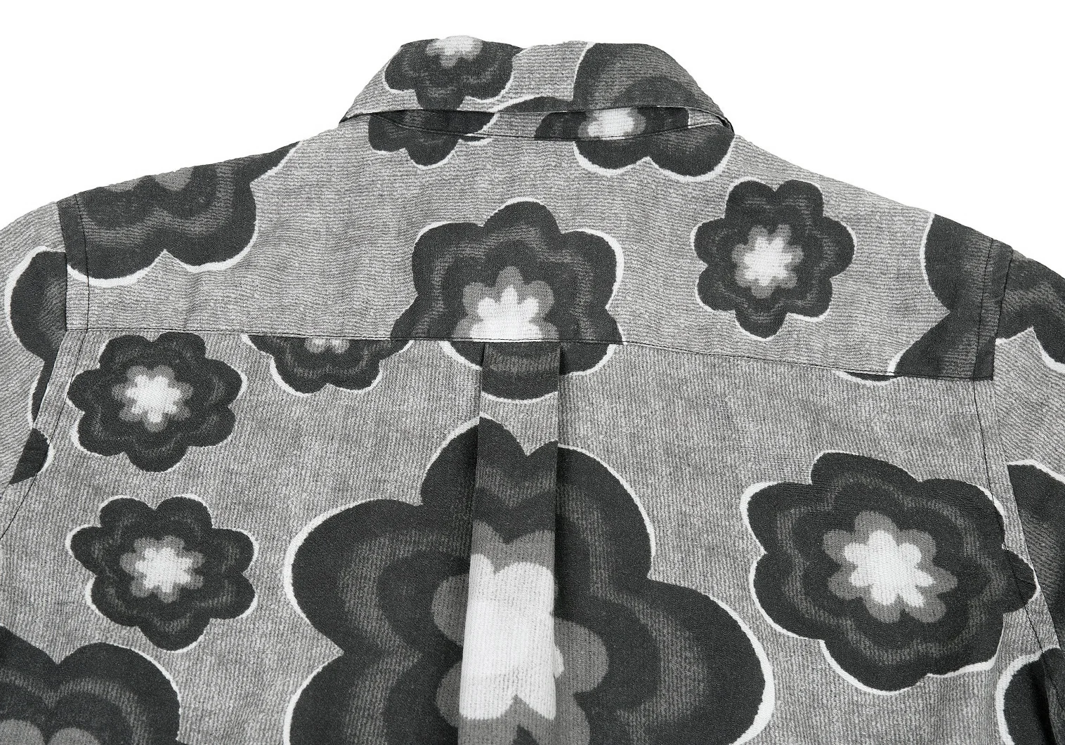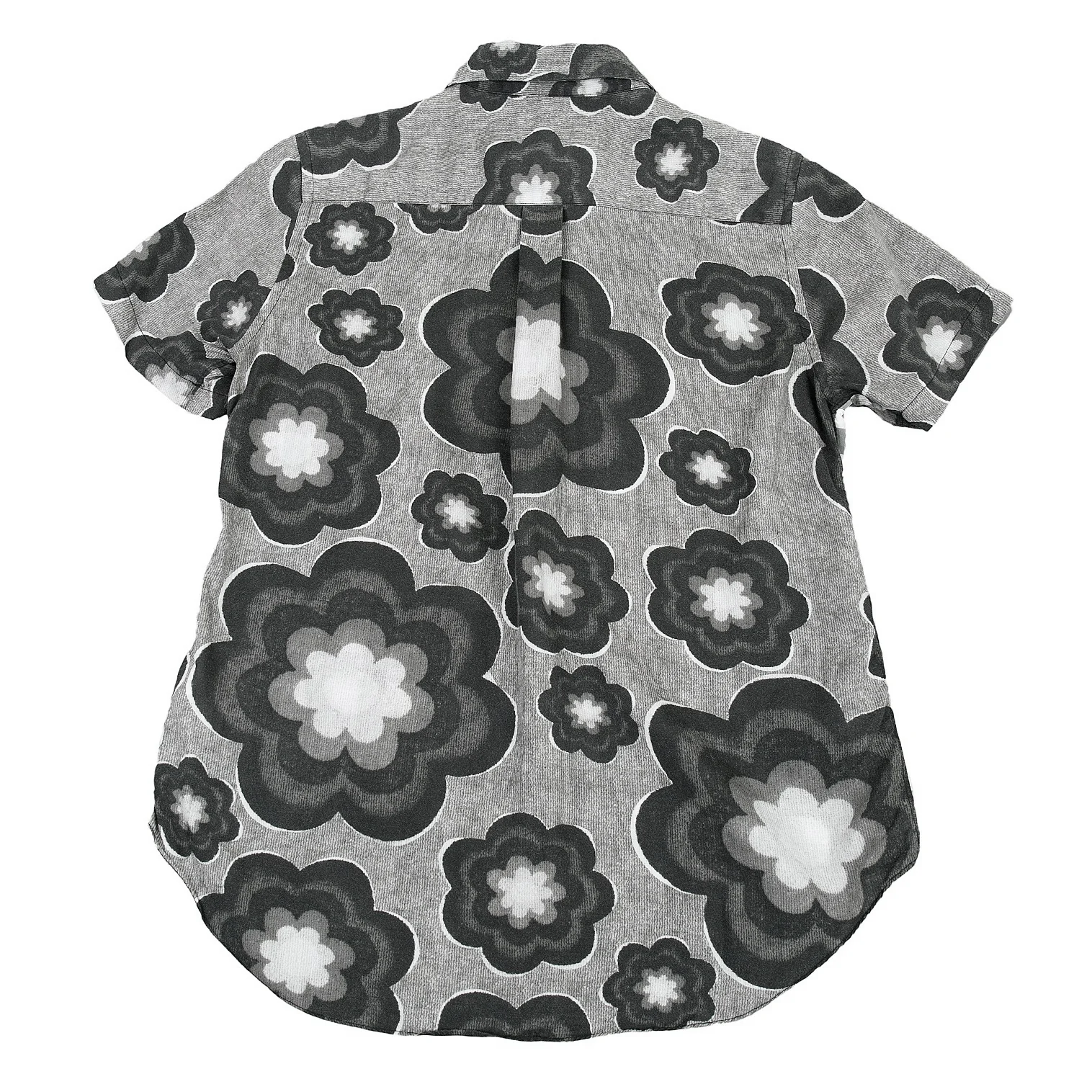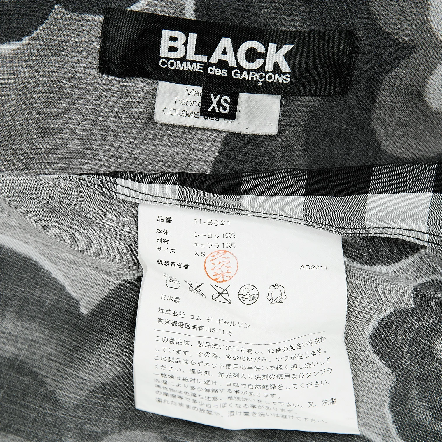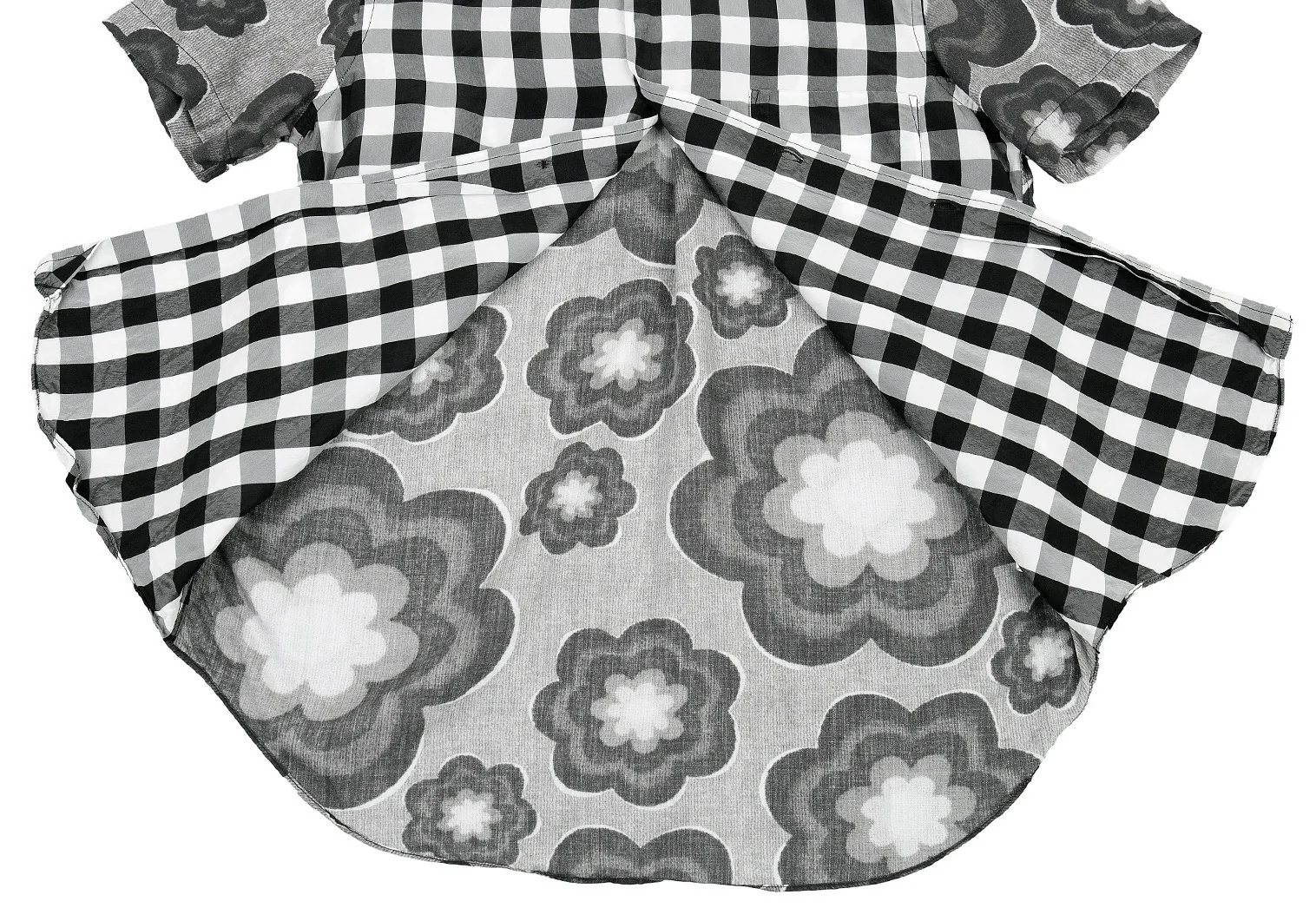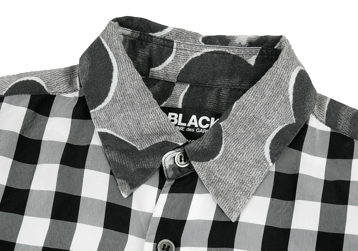 ブラックコムデギャルソンBLACK COMME des GARCONS 異素材チェック切り替えフラワープリント半袖シャツ 黒XS