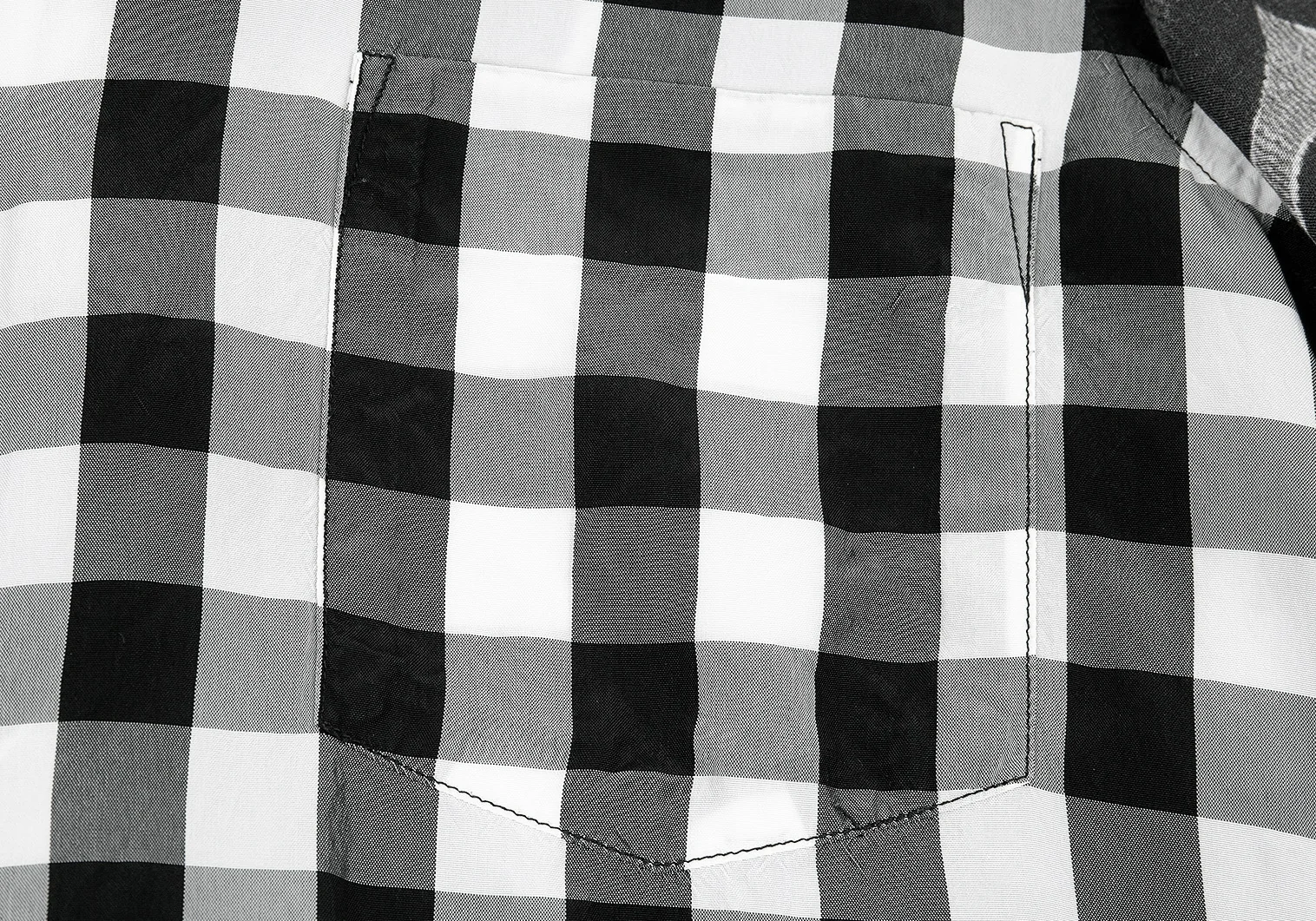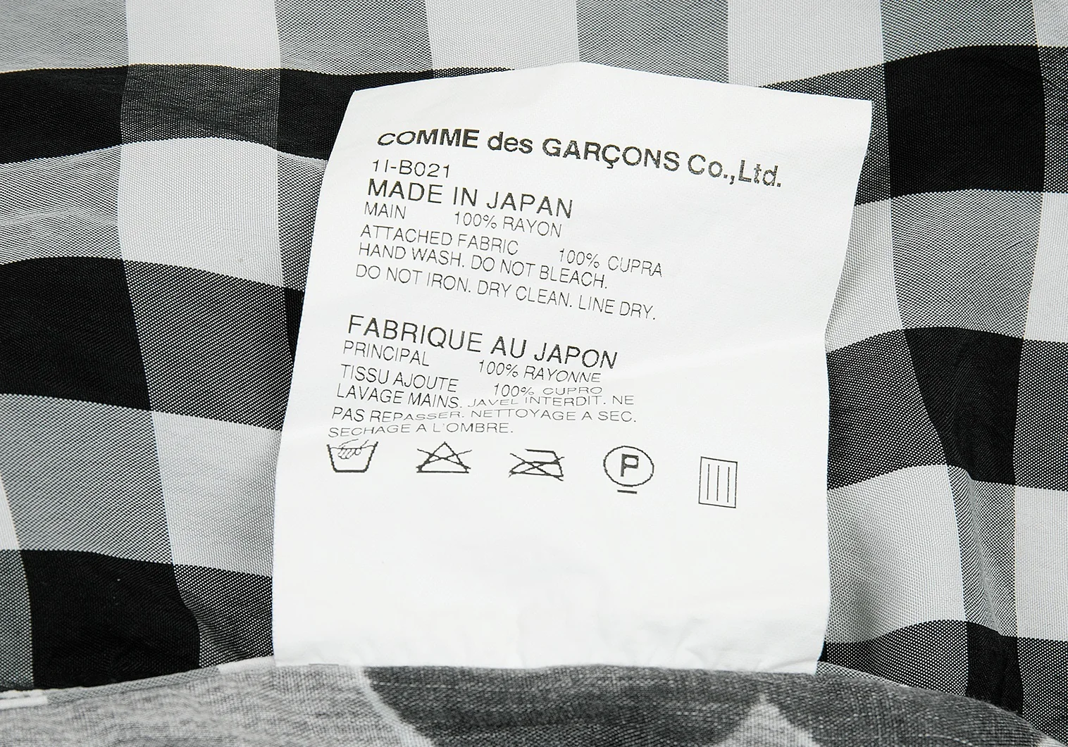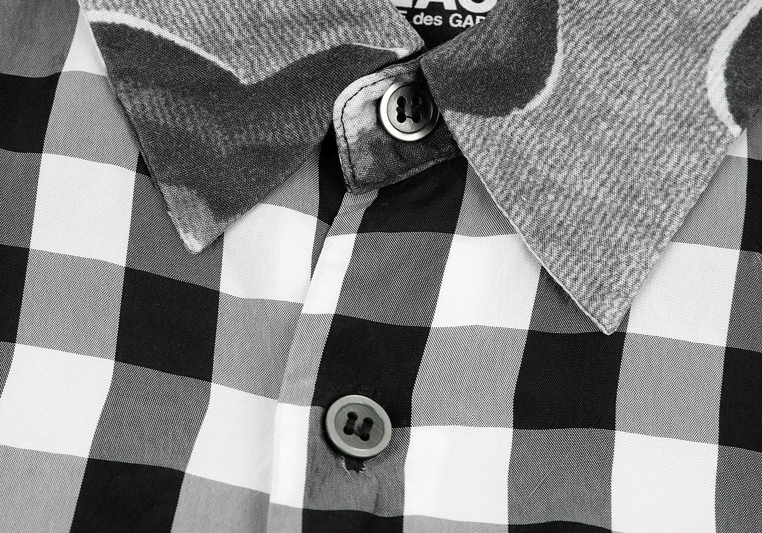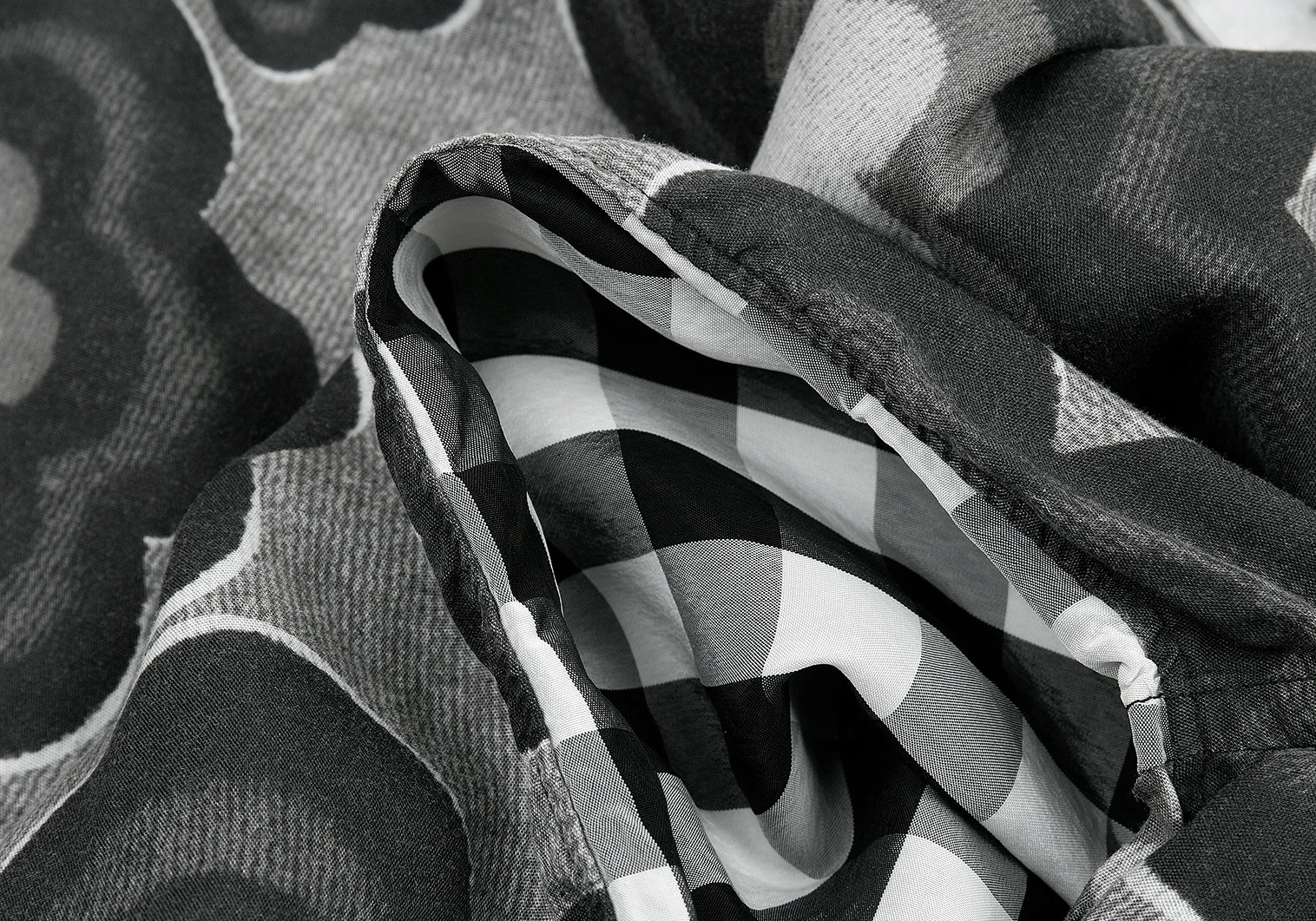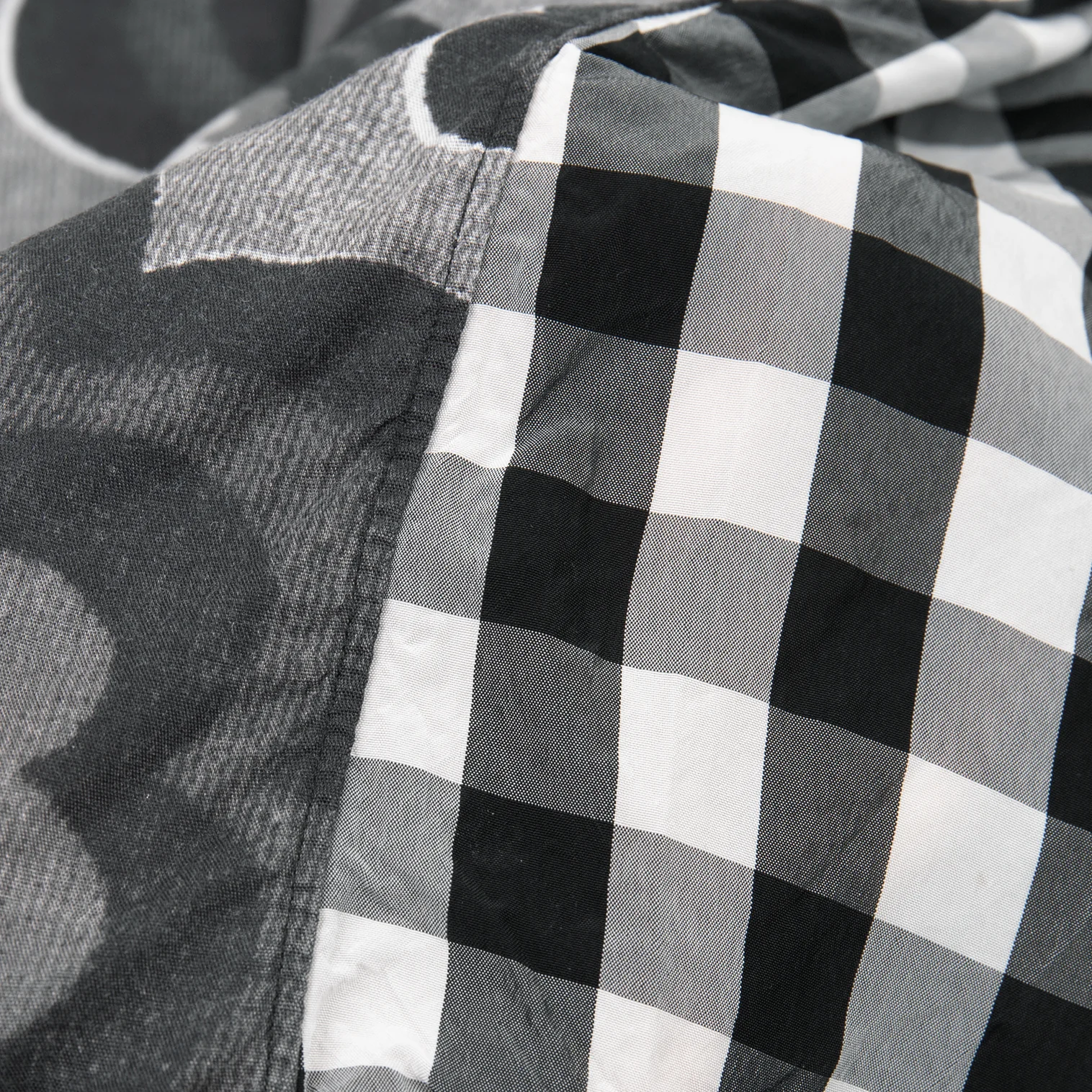 ブラックコムデギャルソンBLACK COMME des GARCONS 異素材チェック切り替えフラワープリント半袖シャツ 黒XS