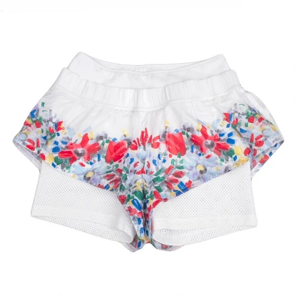 アディダス ステラ マッカートニーadidas by Stella McCartney カラフルプリントメッシュ切り替えパンツ 白マルチM