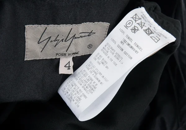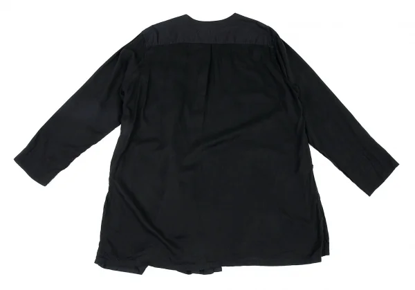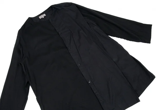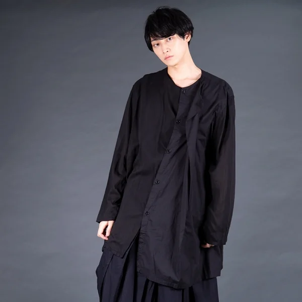 ヨウジヤマモト プールオムYohji Yamamoto POUR HOMME 製品染めノーカラーテンセル切替ロングシャツ 黒4