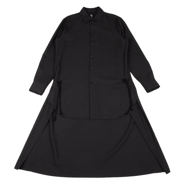 グランドワイGround Y ウールポリロングテールシャツ 黒3