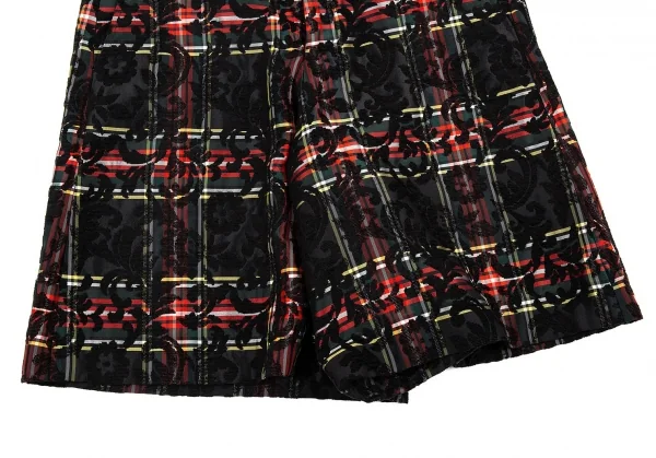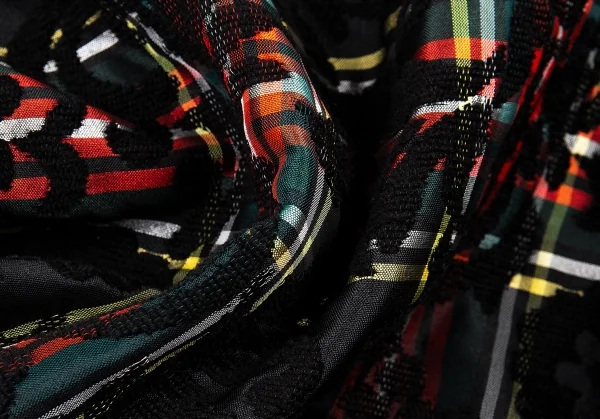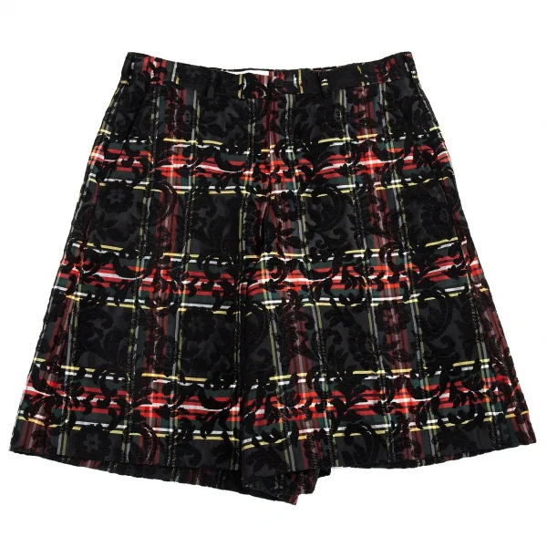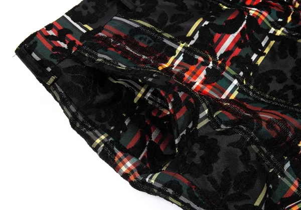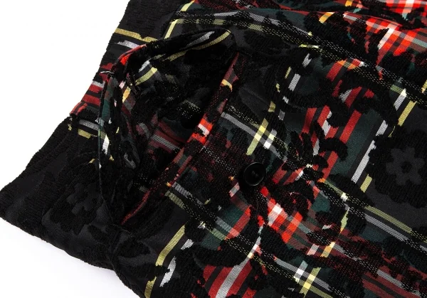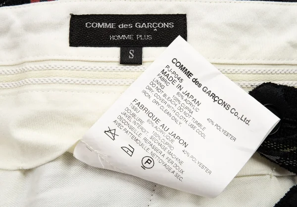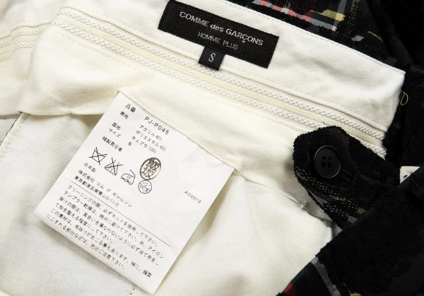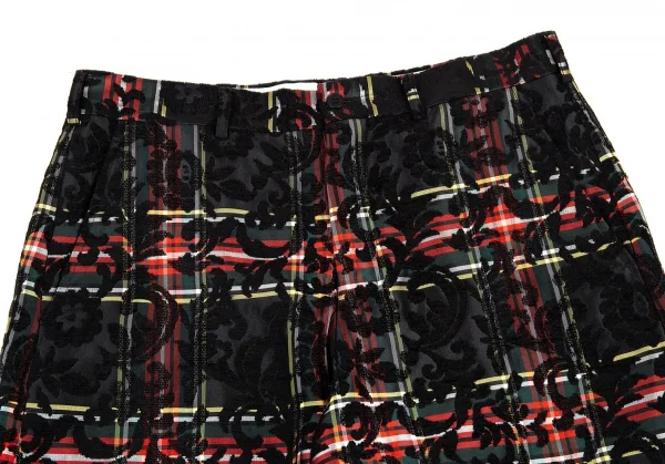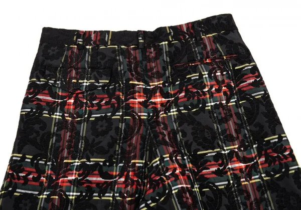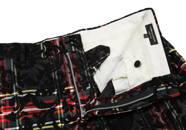 コムデギャルソン オムプリュスCOMME des GARCONS HOMME PLUS フロッキー加工タータンチェックパンツ 黒緑赤S