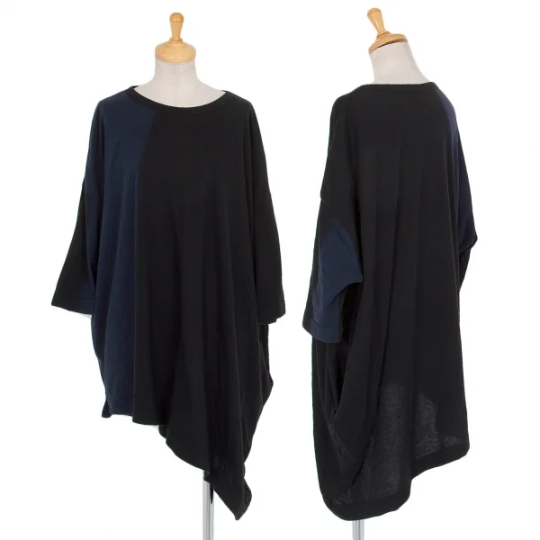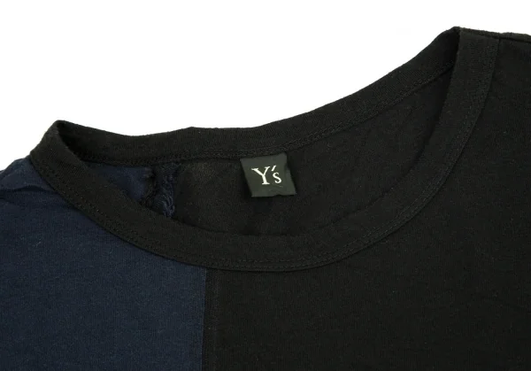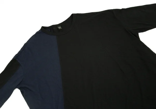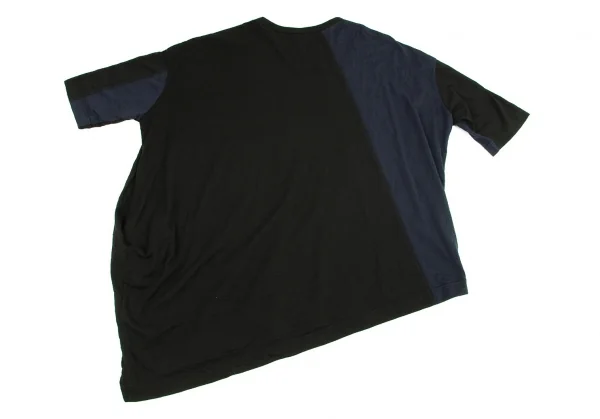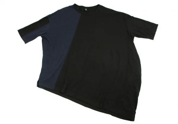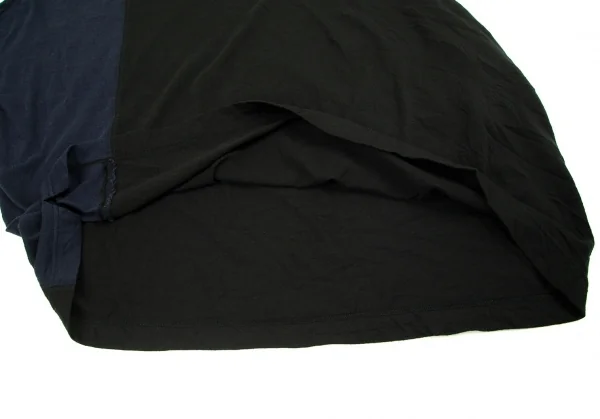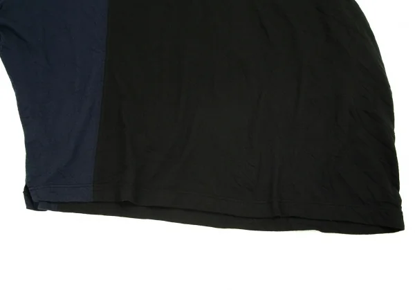 ワイズY's バイカラー切替アシンメトリービッグシルエットワッシャーTシャツ 黒紺2
