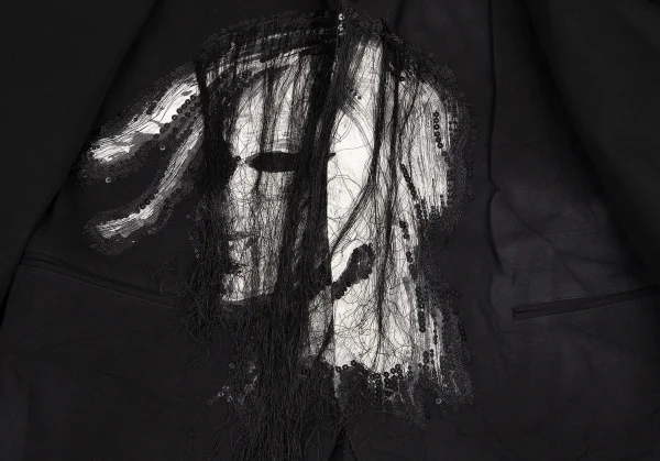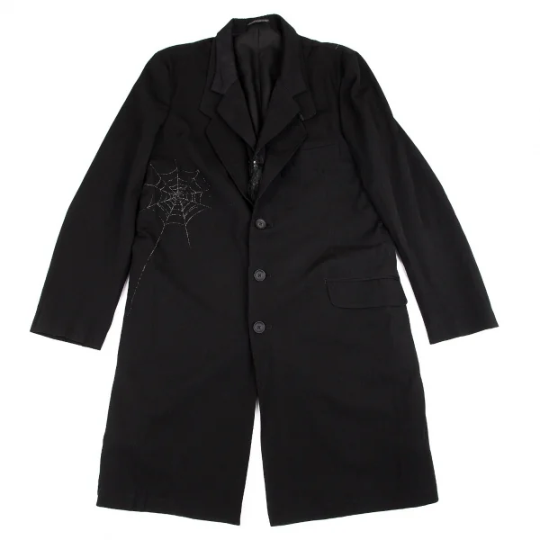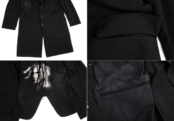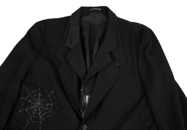 ヨウジヤマモト プールオムYohji Yamamoto POUR HOMME インサイドホラーパッチ刺繍スパイダーウェブプリントジャケット 黒4
