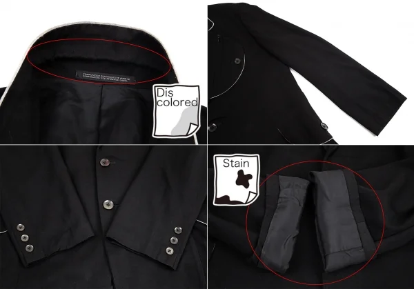 ジャケット襟元にわずかに色褪せ、袖裏に薄汚れがあります(写真参照)その他目立ったシミ、汚れ、ほつれ等なくいい状態です。クリーニング済み
