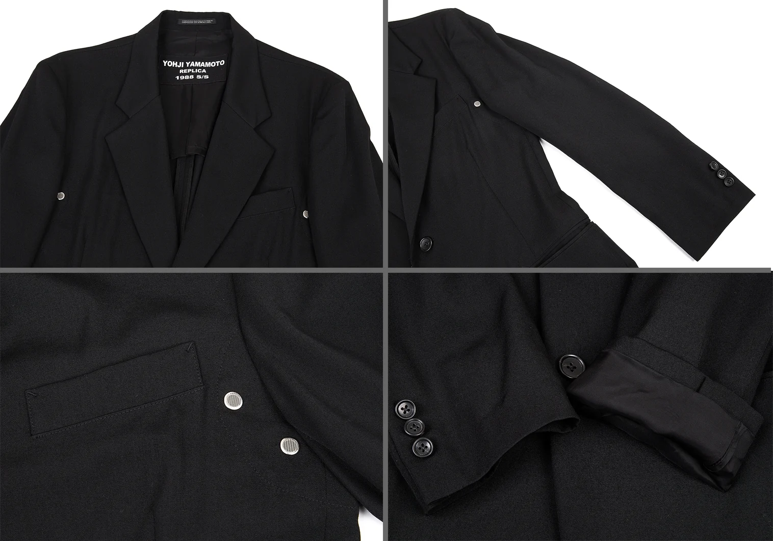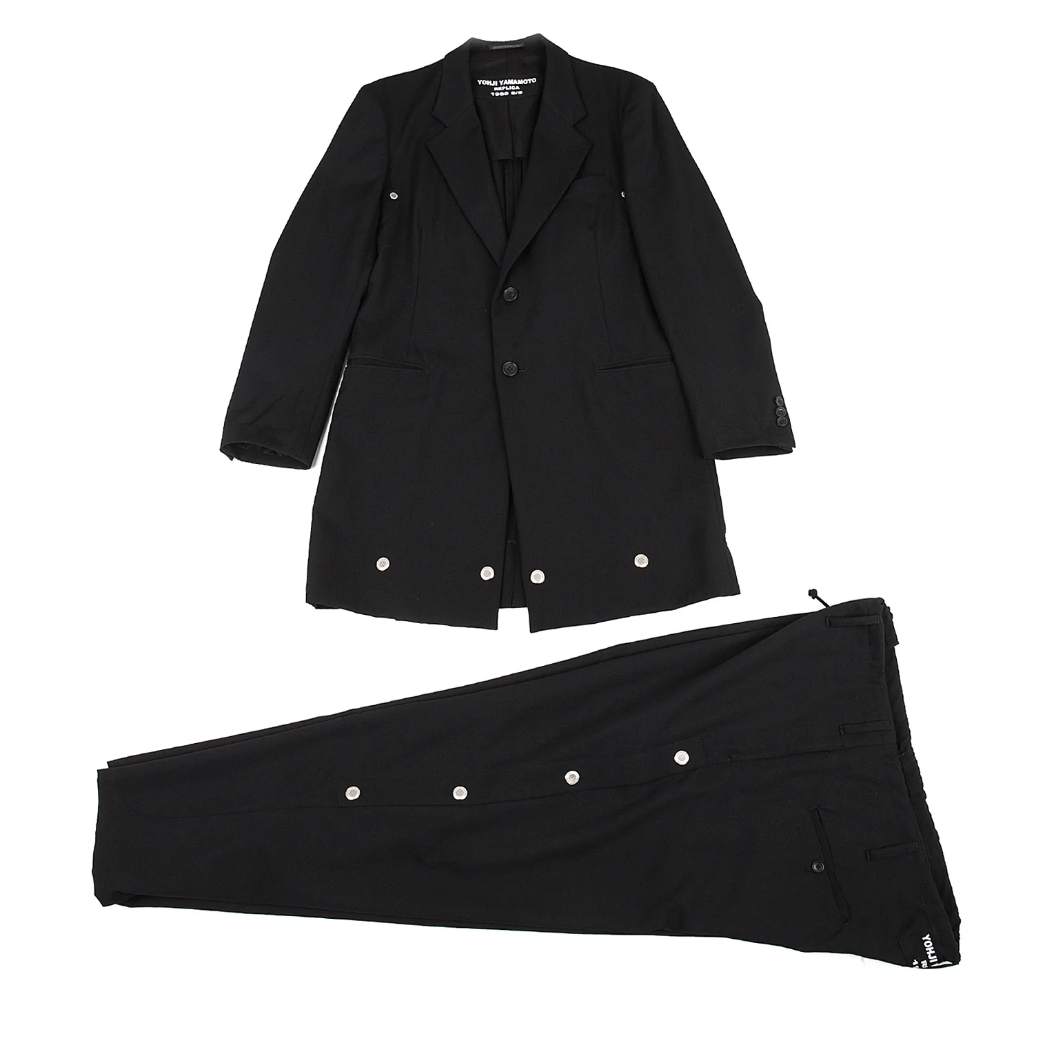 ヨウジヤマモト プールオムYohji Yamamoto POUR HOMME REPLICA 1988S/S 復刻ウールギャバメッシュアイレットセットアップスーツ 黒3