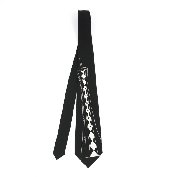 ヨウジヤマモトYohji Yamamoto ウールグラフィックプリントネクタイ 黒