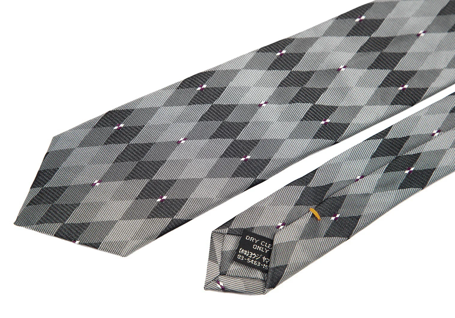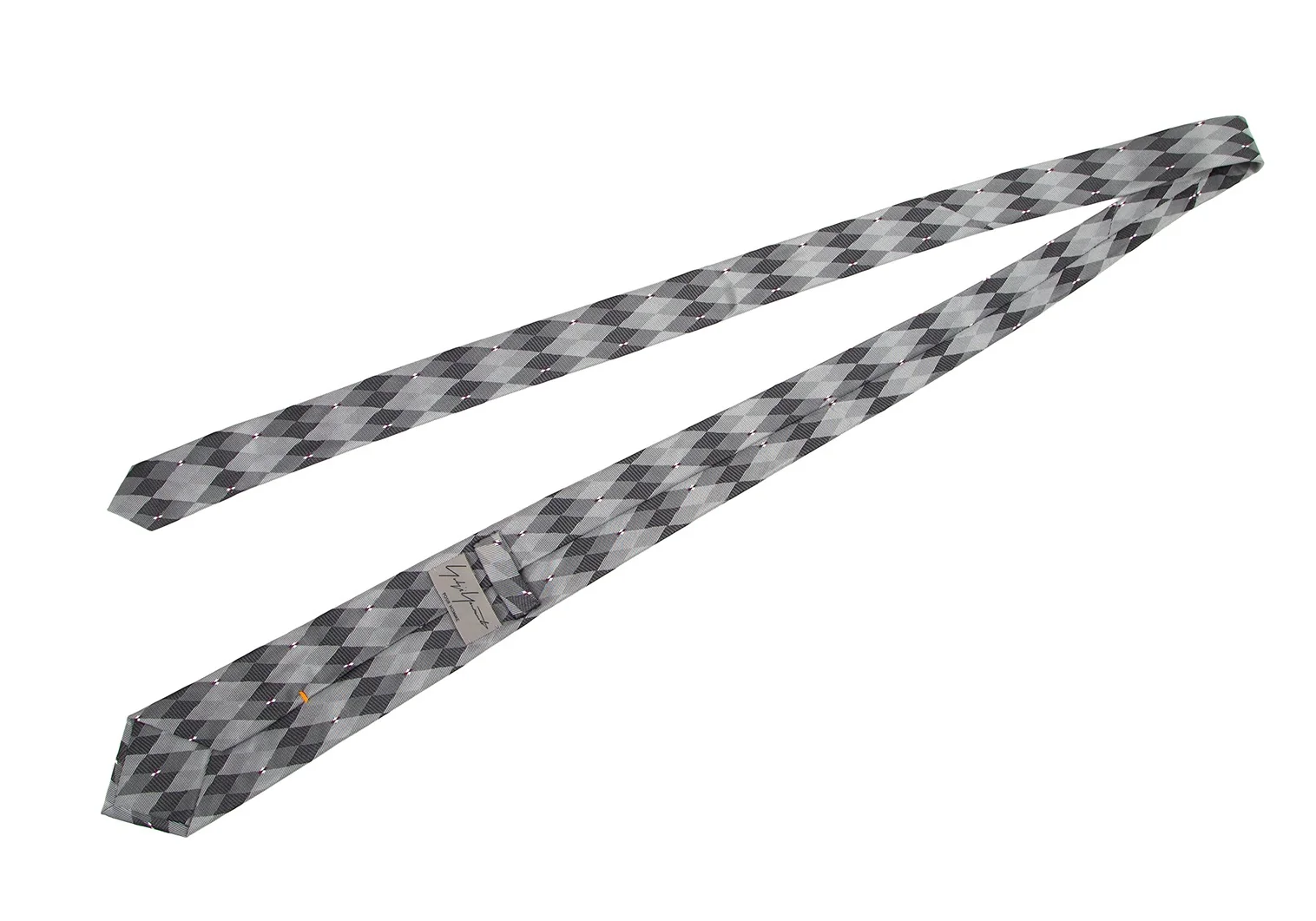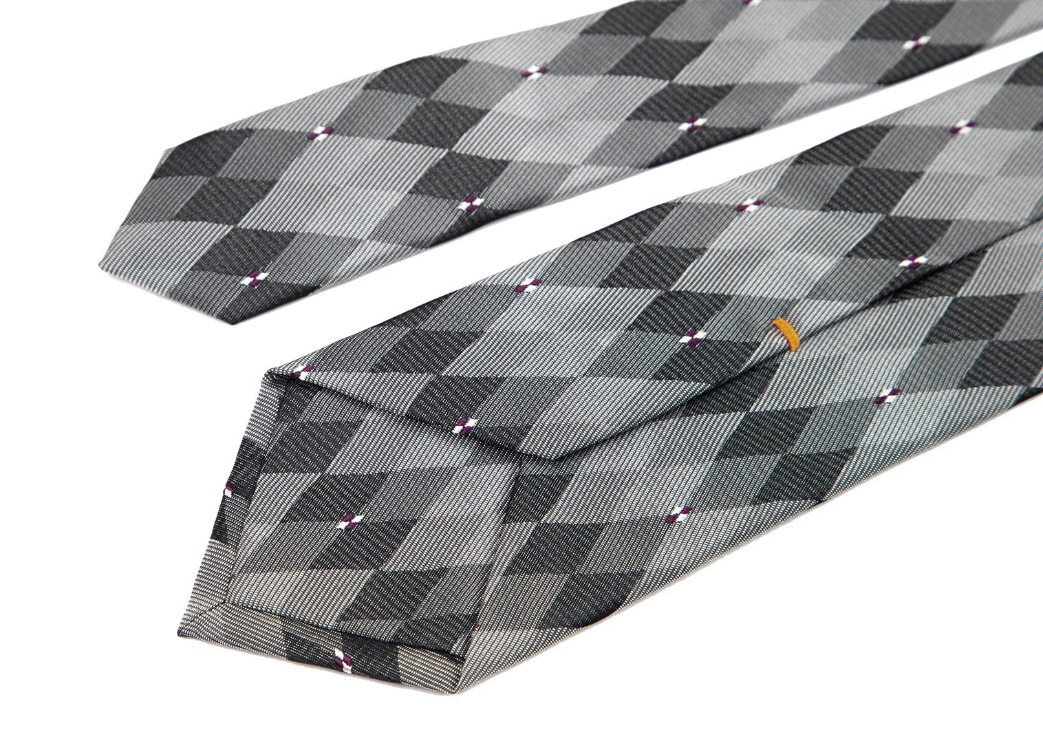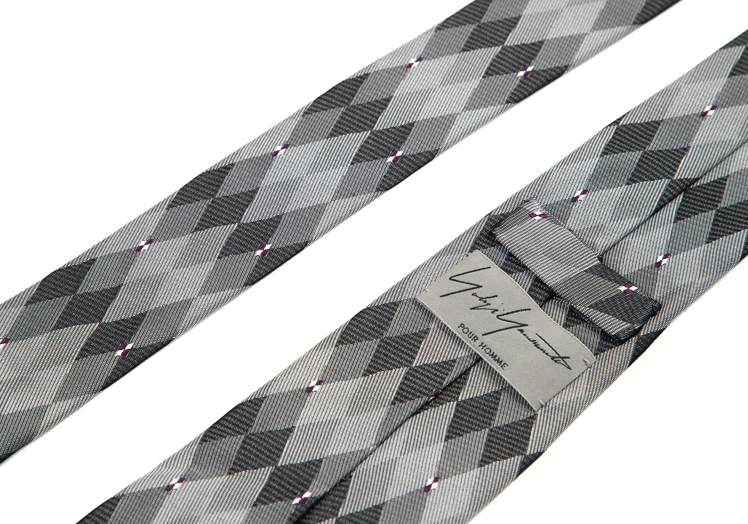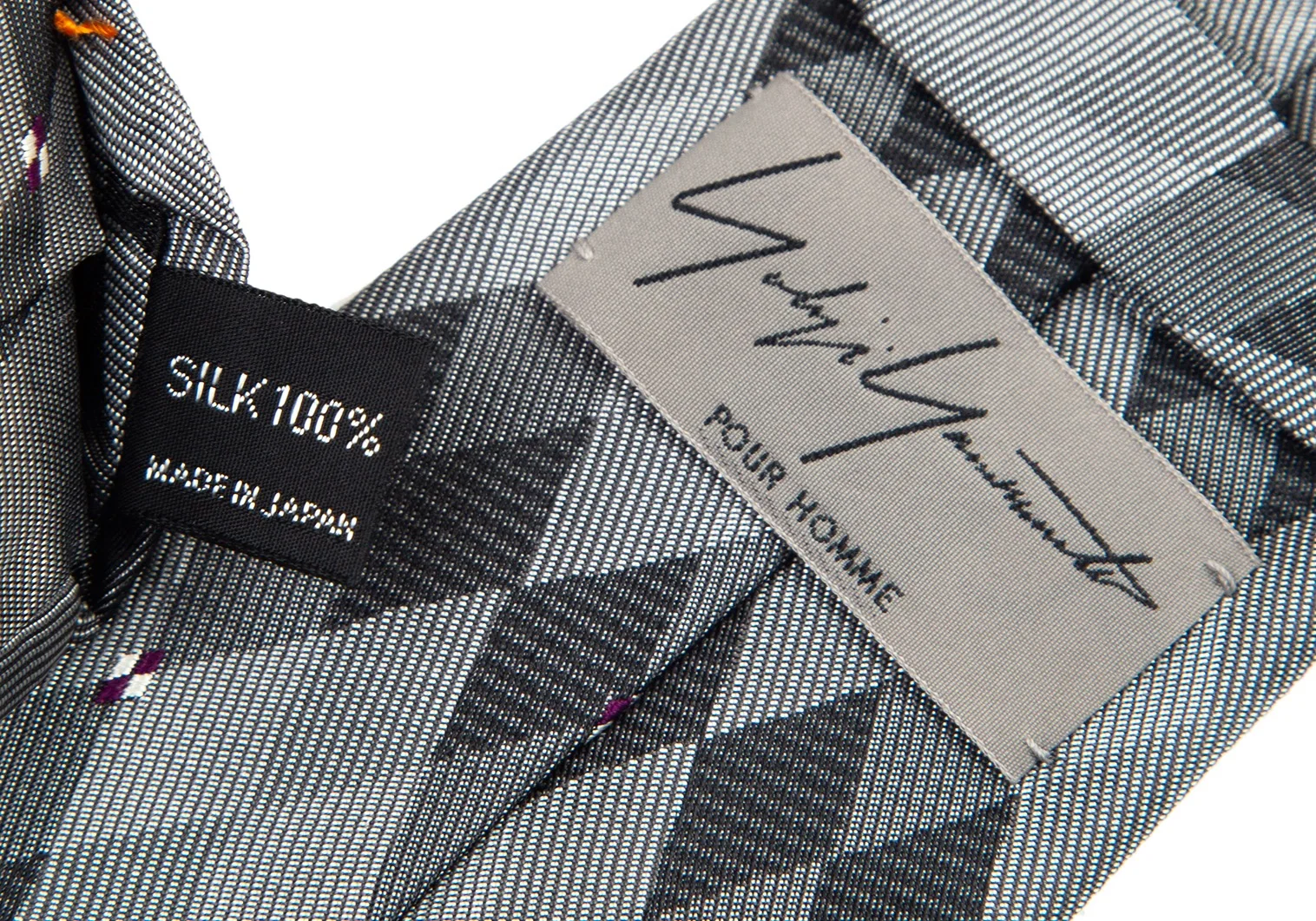 ヨウジヤマモト プールオムYohji Yamamoto POUR HOMME シルクダイヤモンドチェックジャカードネクタイ グレー濃淡