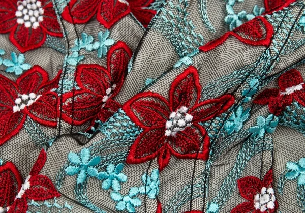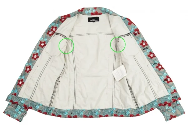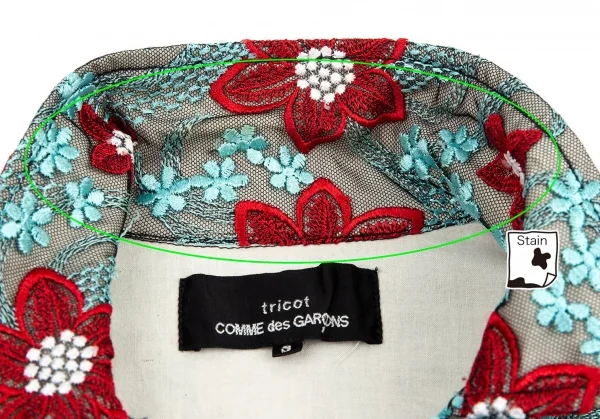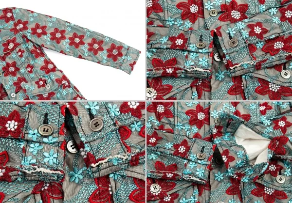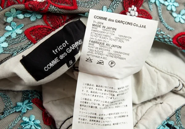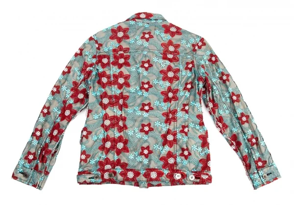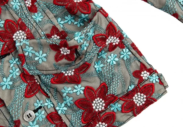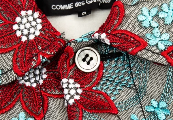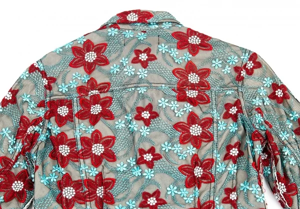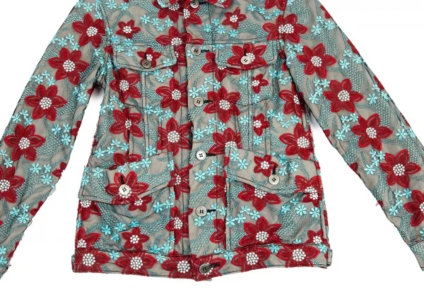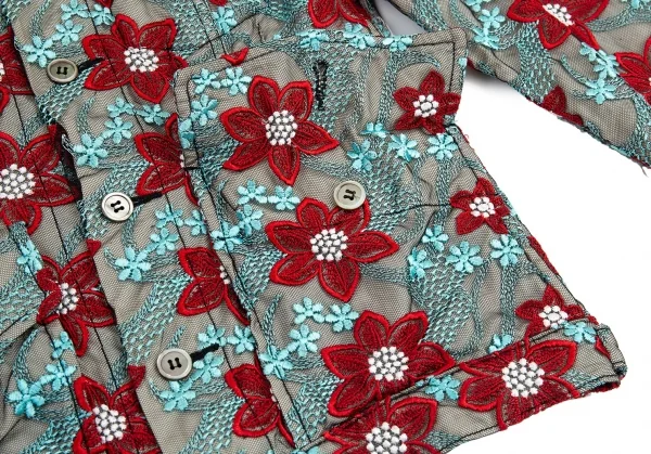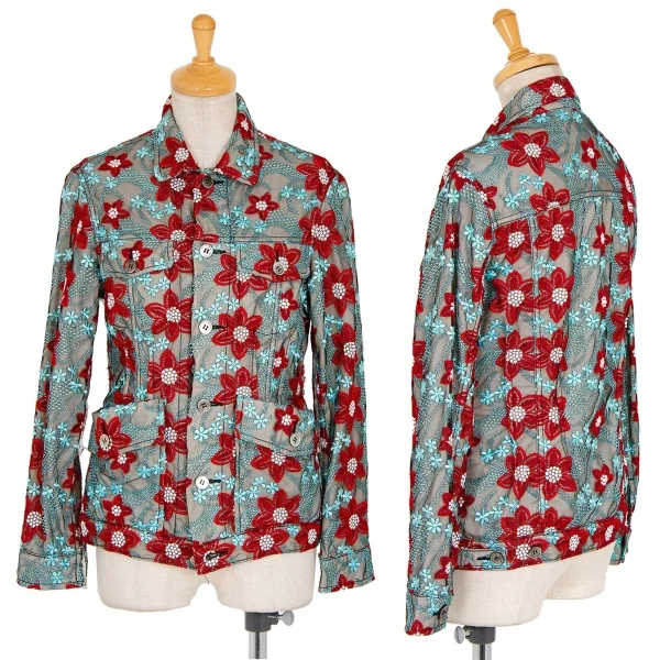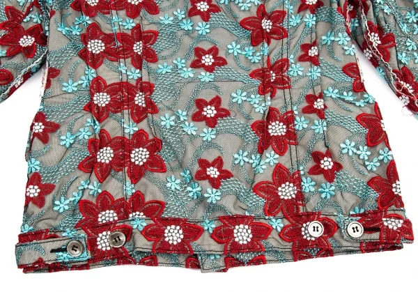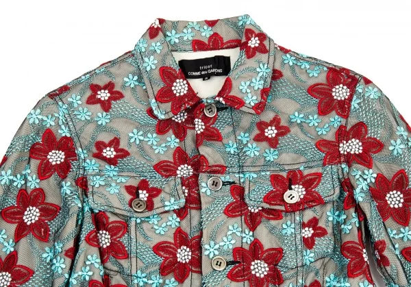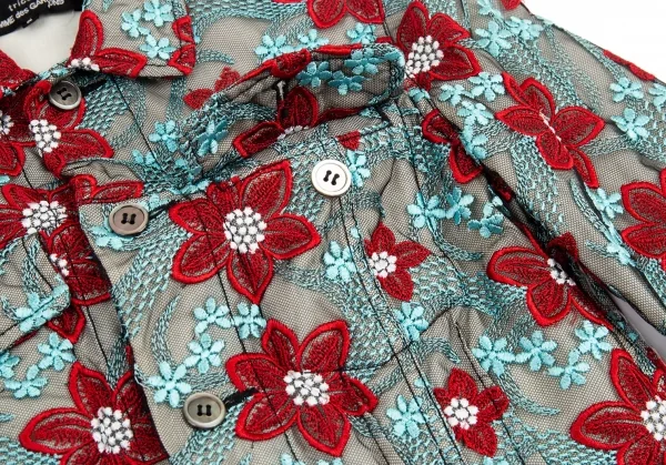 トリココムデギャルソンtricot COMME des GARCONS エンブロイダリーチュールトラッカージャケット 水色赤他S