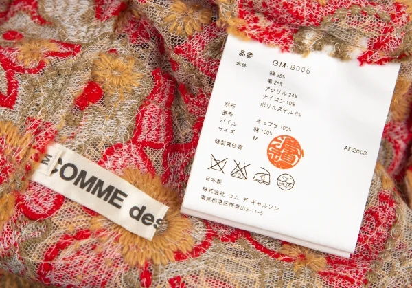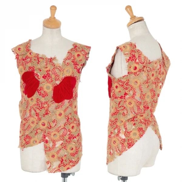 コムデギャルソンCOMME des GARCONSエンブロイダリーチュールタンクトップ モカ赤M