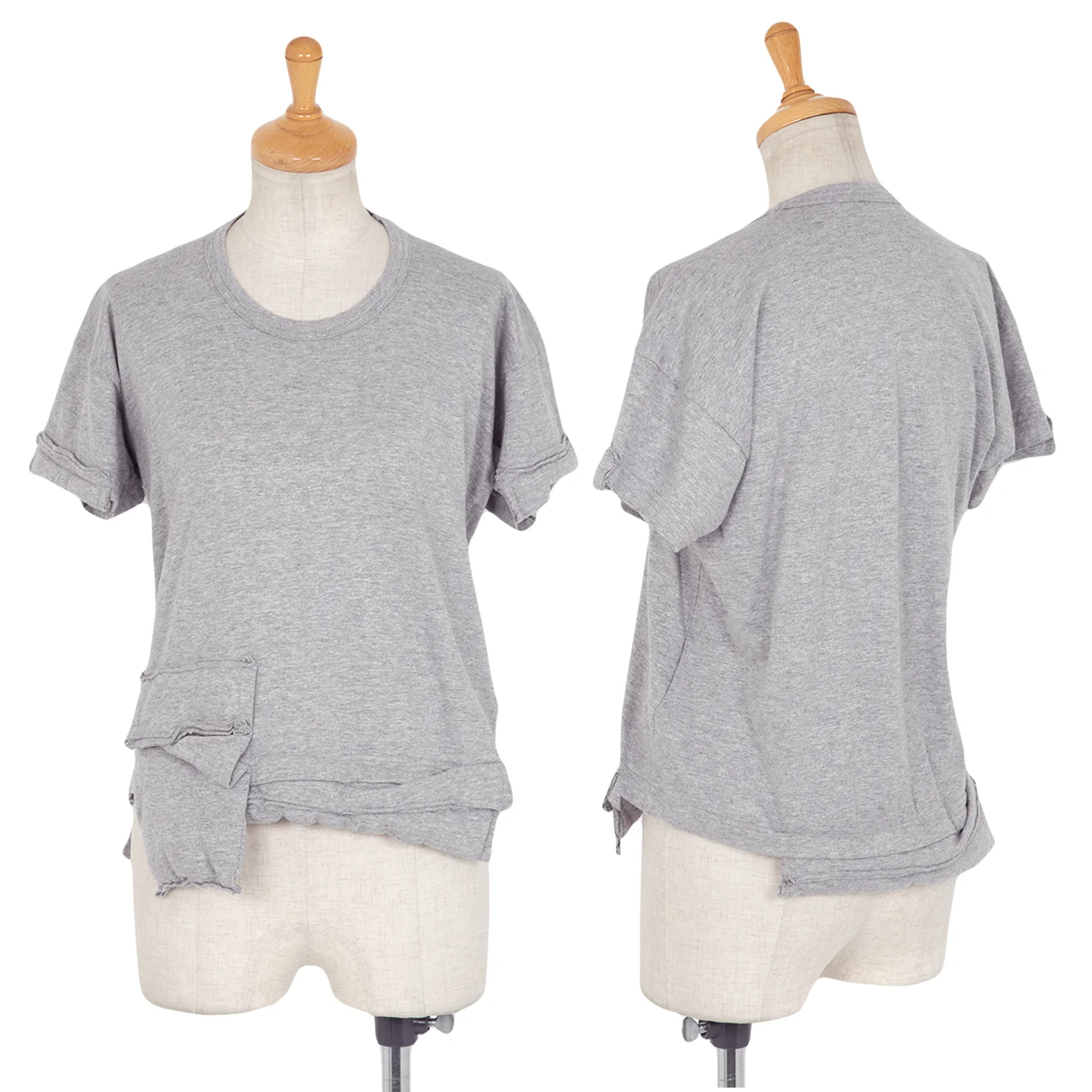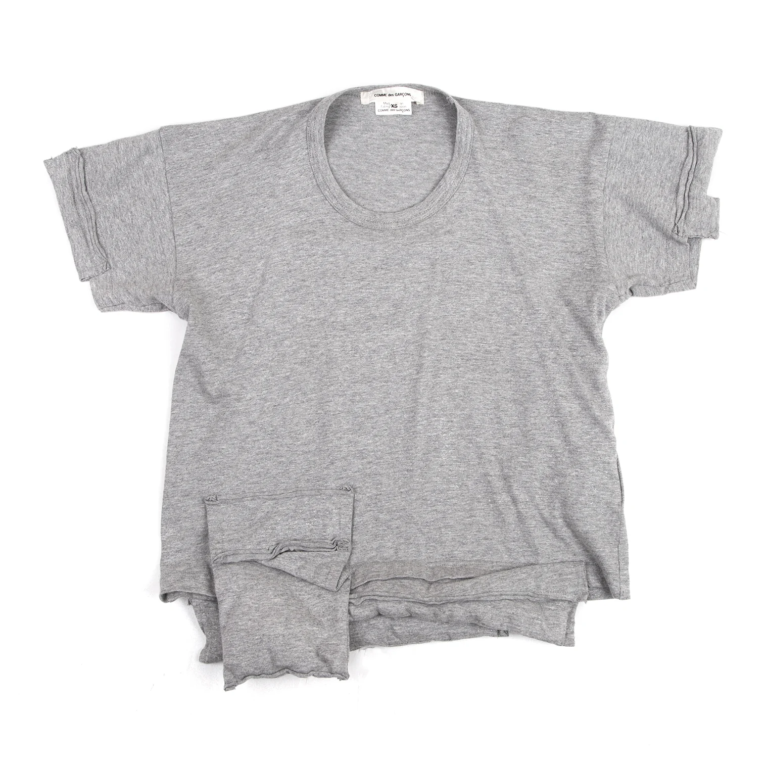 コムデギャルソンCOMME des GARCONS ラメプリント裾中綿切替Tシャツ 杢グレーXS