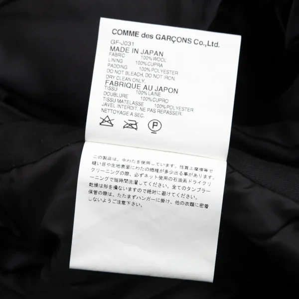 コムデギャルソンCOMME des GARCONS ギャザーデザイン中綿ジャケット 黒S