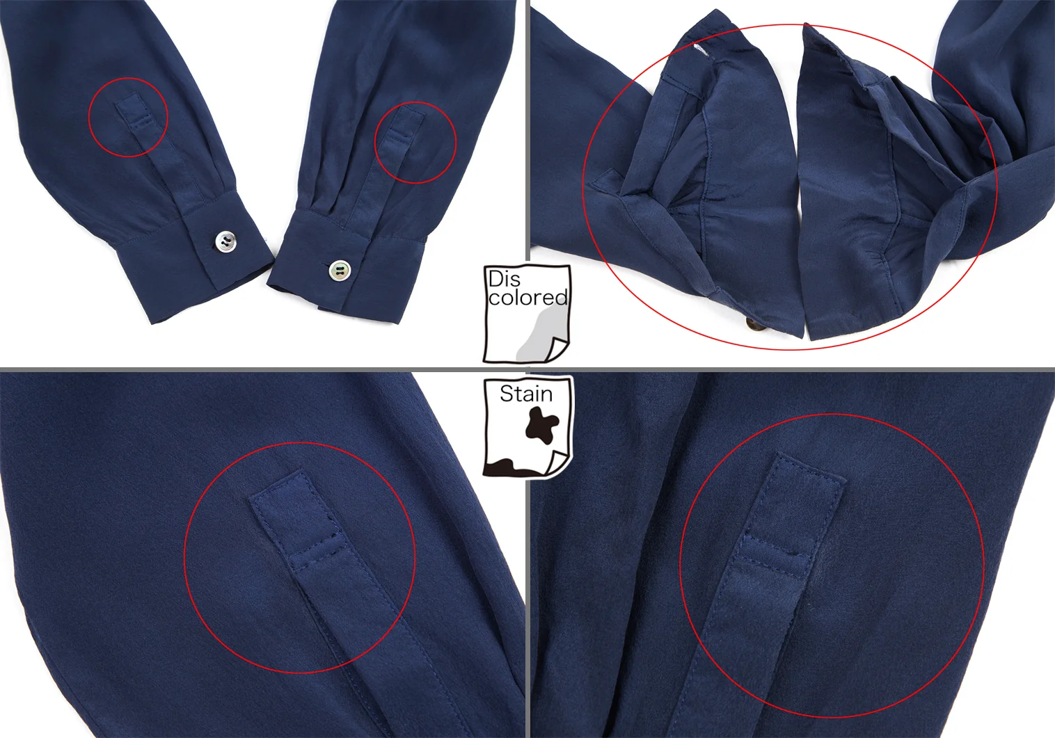 袖先に色褪せ・薄シミがあります(写真参照)。その他に目立ったシミ、汚れ、ほつれ等なくいい状態です。クリーニング済み