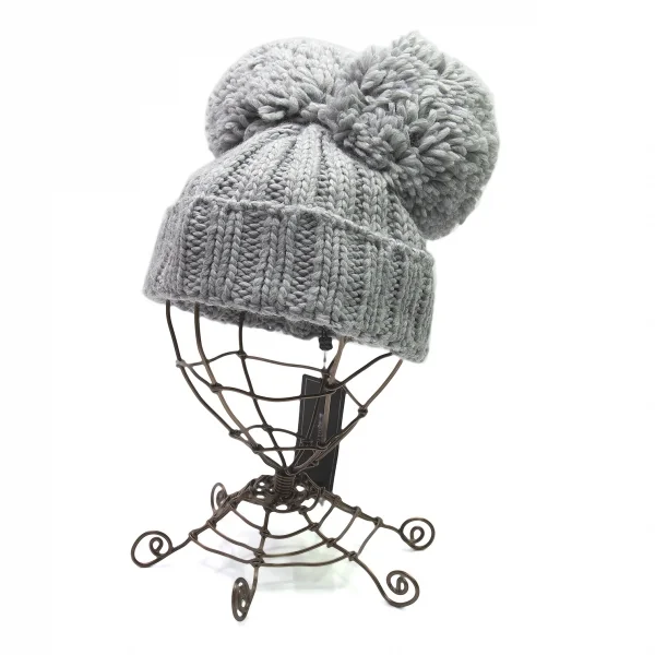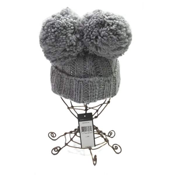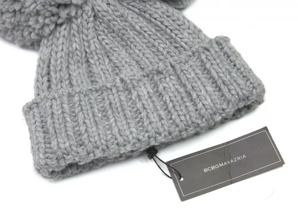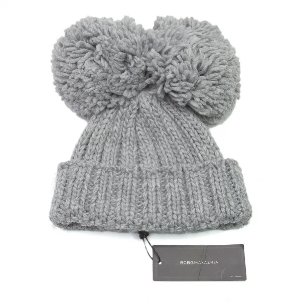 ビーシービージーマックスアズリアBCBGMAXAZRIA ビッグボンボンニットキャップ グレーOS