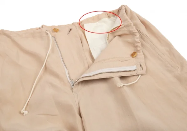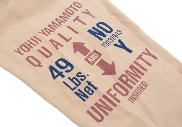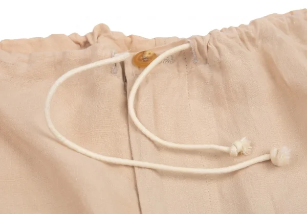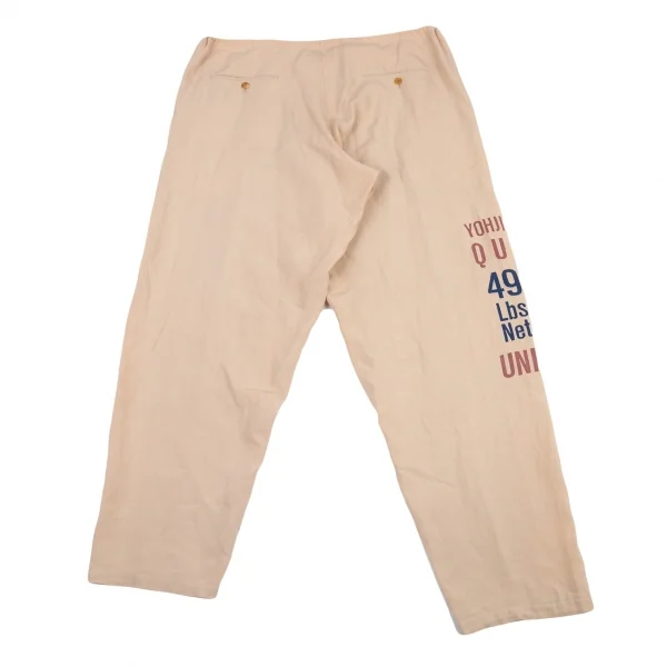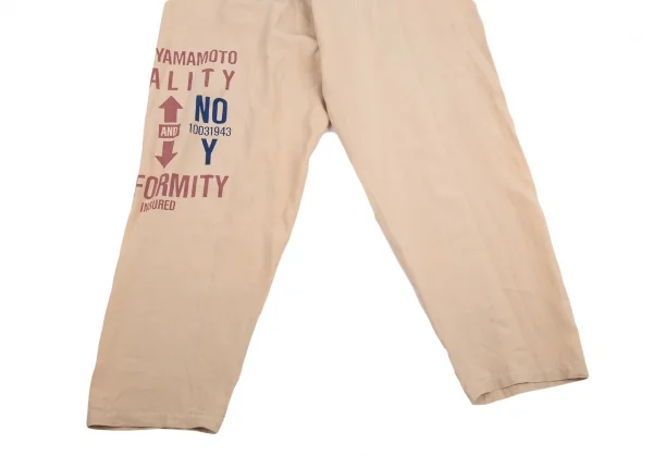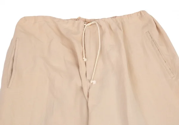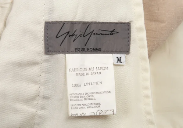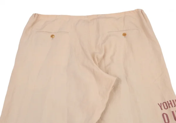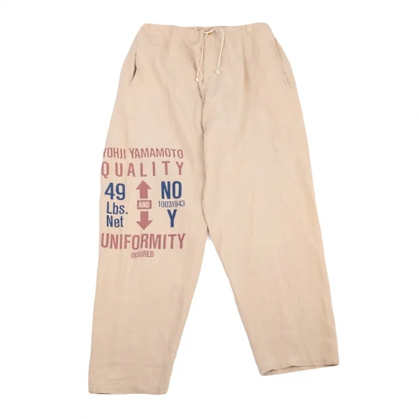 ヨウジヤマモト プールオムYohji Yamamoto POUR HOMMEリネンサインプリント紐ウエストアシンメトリーパンツ ベージュM