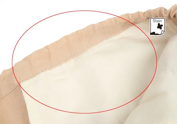 ウエスト裏ポケット袋布にシミがあります(写真参照)。裾丈が左右違っております。その他に目立ったシミ、汚れ、ほつれ等なくいい状態です。クリーニング済み