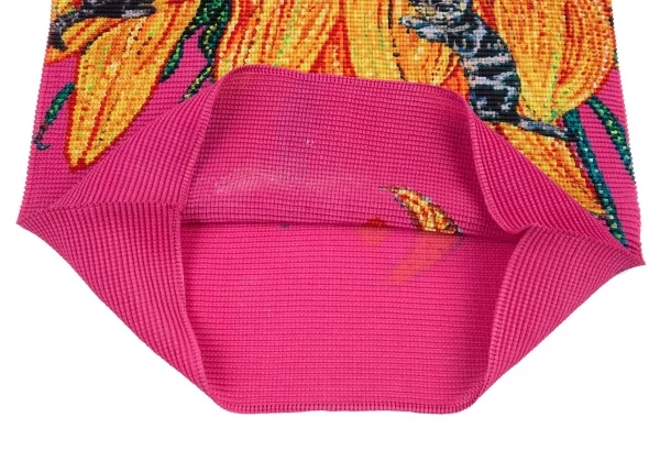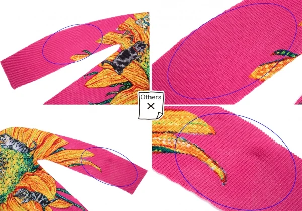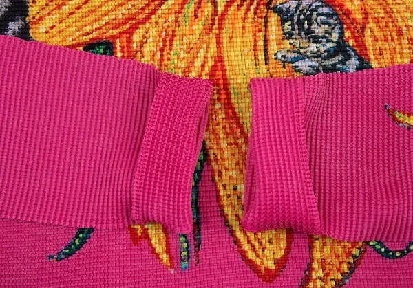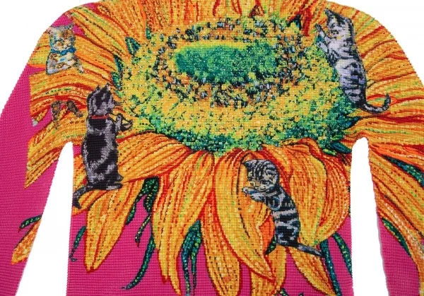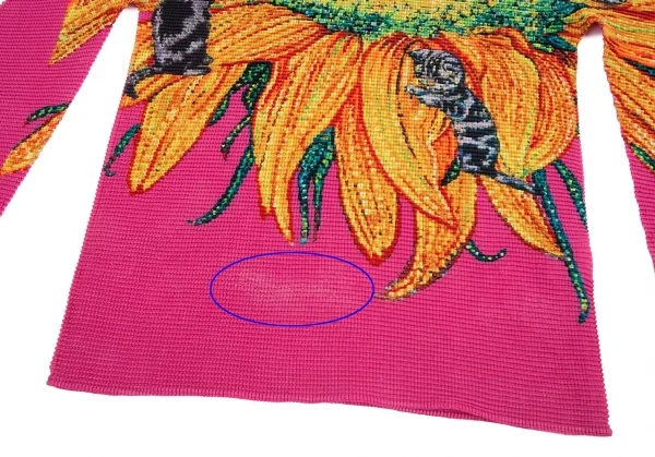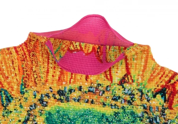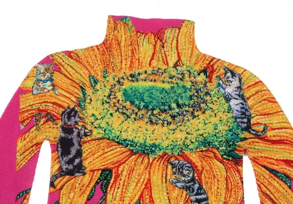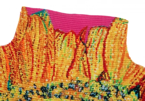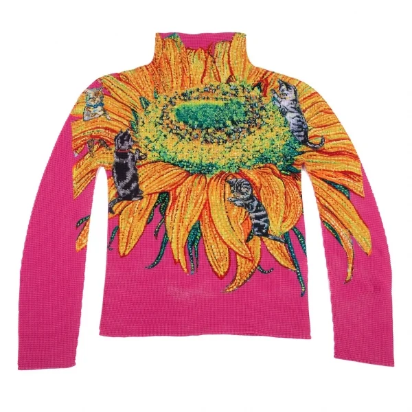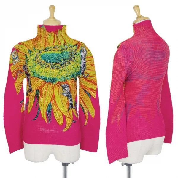 イッセイミヤケ ミーISSEY MIYAKE me 横尾美美 HANA ヒマワリと猫プリントボックスプリーツハイネックカットソー ピンクマルチF