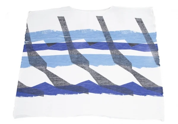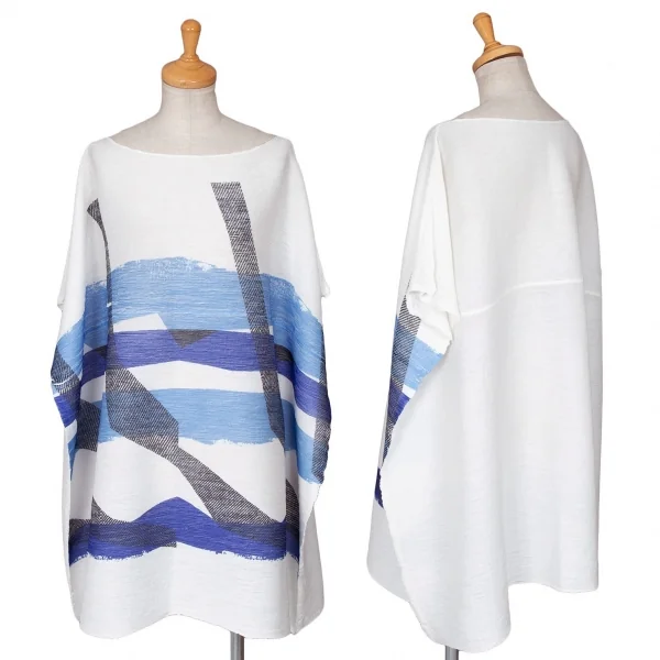 イッセイミヤケ ミーISSEY MIYAKE me フロントラインプリントボックスシルエットチュニック 白青黒F
