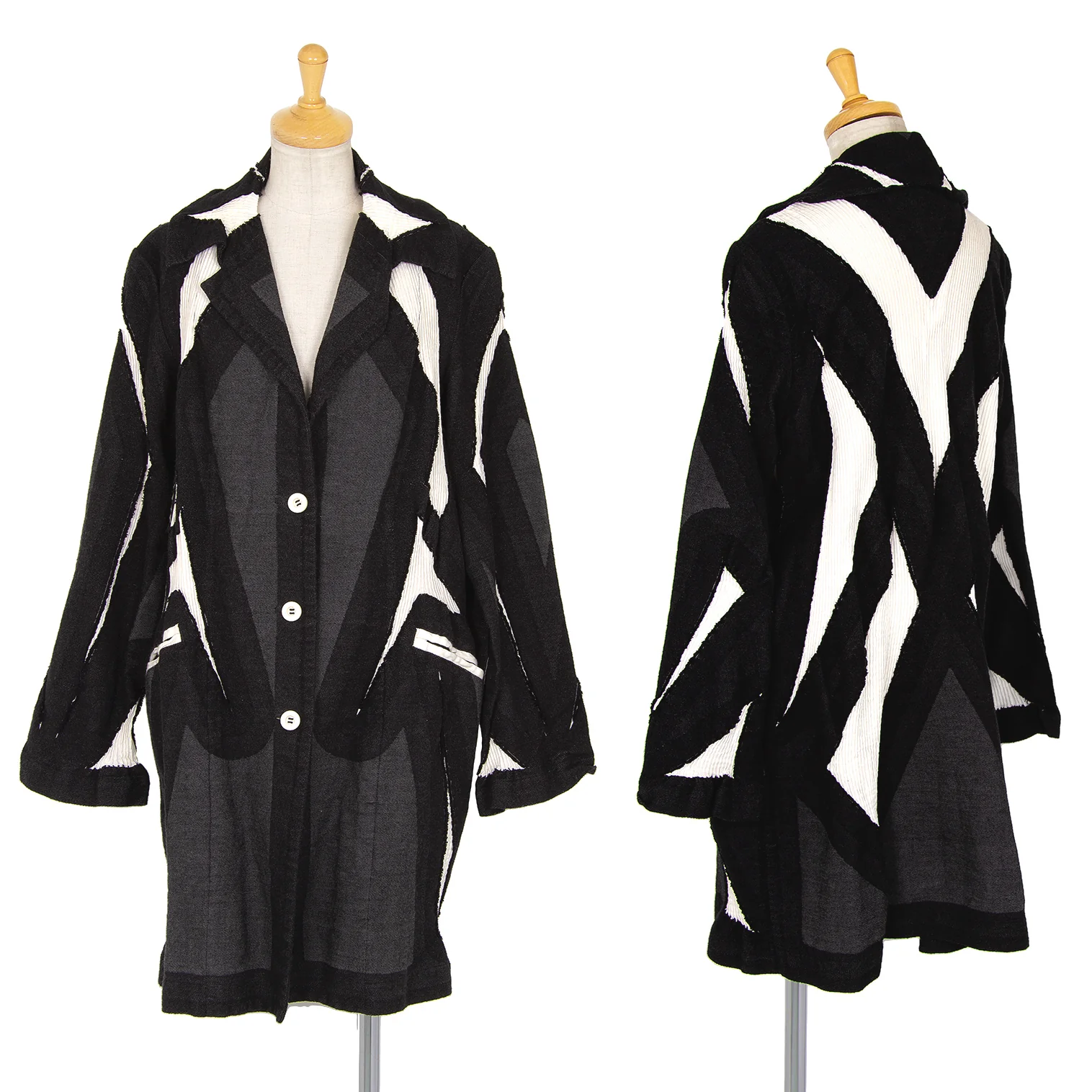 イッセイミヤケISSEY MIYAKE プリーツ織り変え幾何学ジャガードジャケット 黒グレー白2