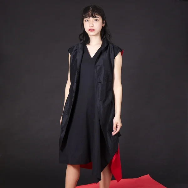 イッセイミヤケISSEY MIYAKE プリーツ織り変えノースリーブジャケット 黒2