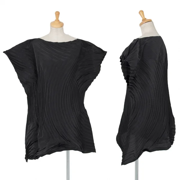イッセイミヤケISSEY MIYAKE カーブプリーツ変形トップス 黒2
