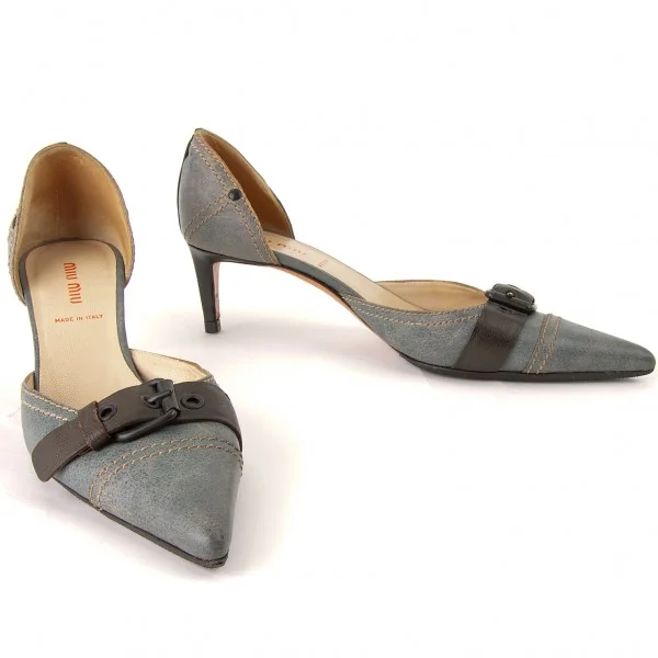 ミュウミュウmiumiu レザーパンプス ブルー37