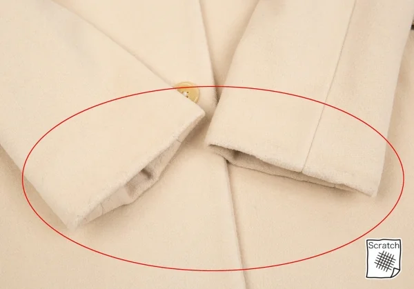 品質表示タグに劣化があります。右肩に毛抜け、袖先にスレ、袖裏に薄汚れがあります(画像参照)。その他目立ったシミ、汚れ、ほつれ等ありません。クリーニング済み