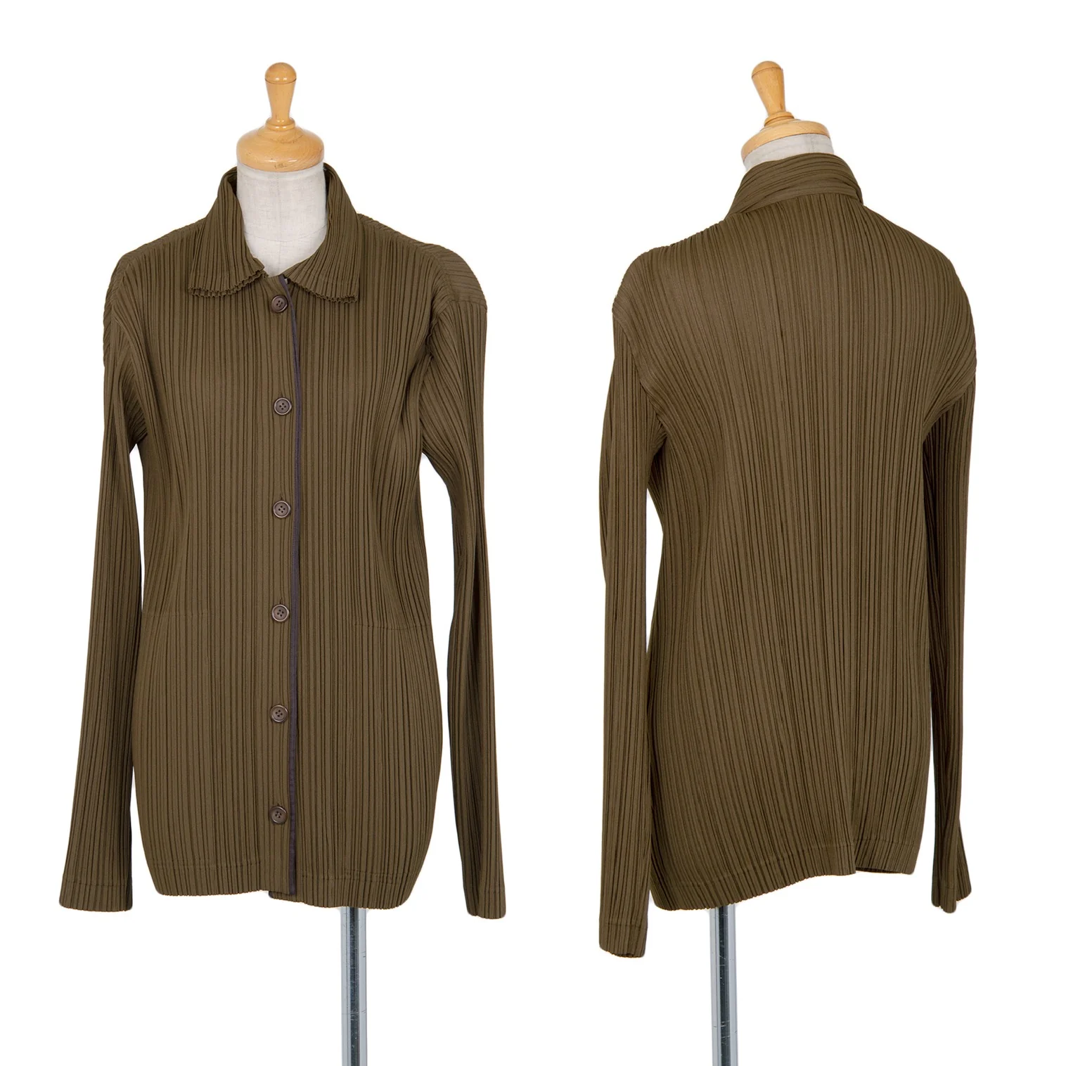 イッセイミヤケISSEY MIYAKE WHITE LABEL パイピングプリーツジャケット カーキ3