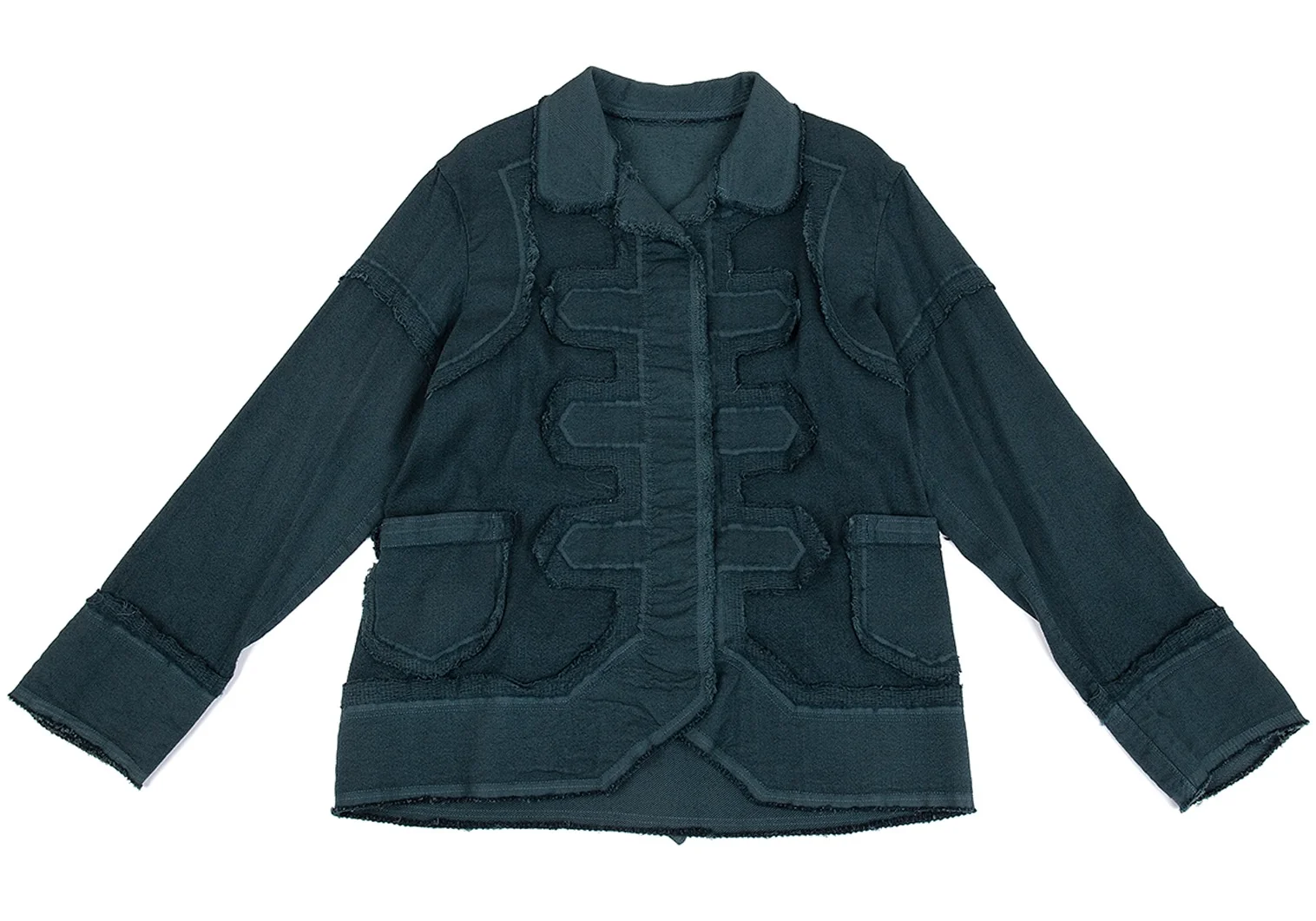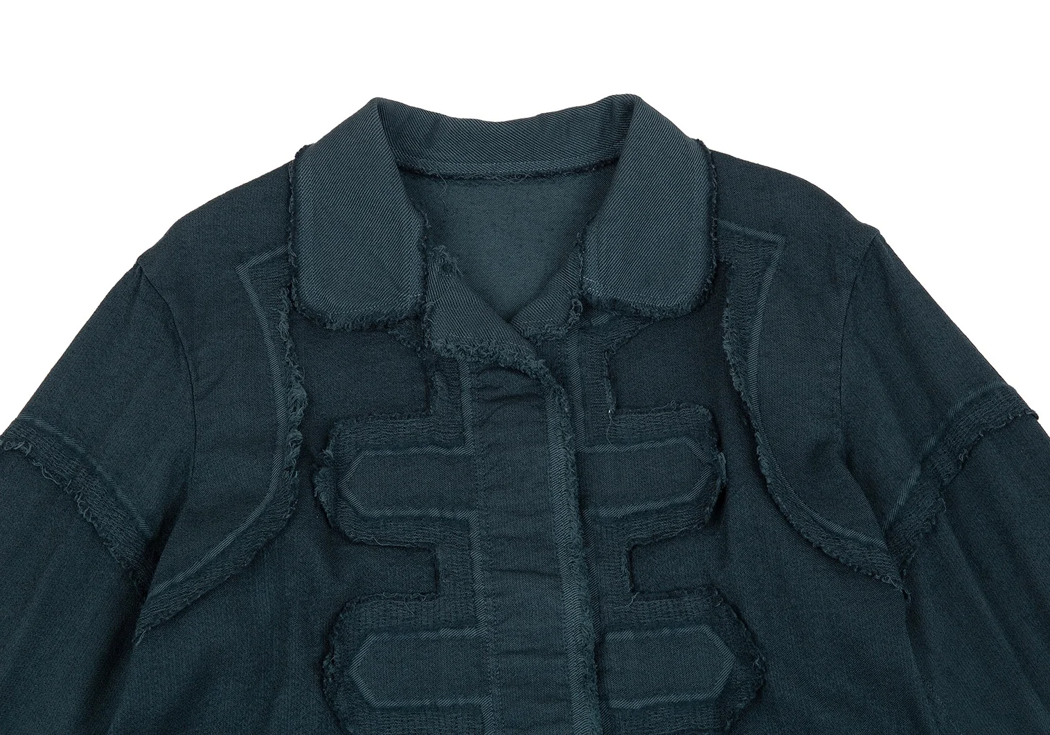 イッセイミヤケ エーポックISSEY MIYAKE A-POC 製品染めデザイン織り裁ち切りジャケット ビリジアンブルー2