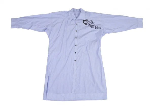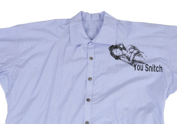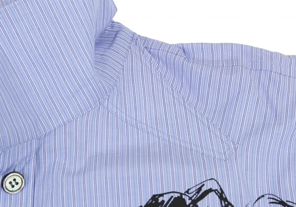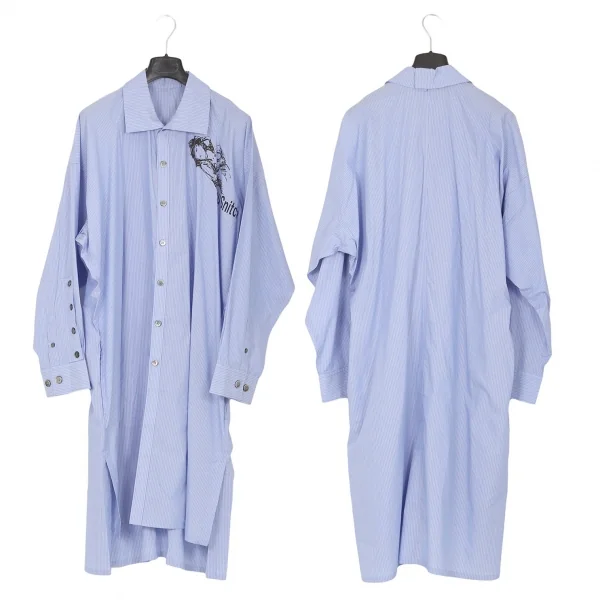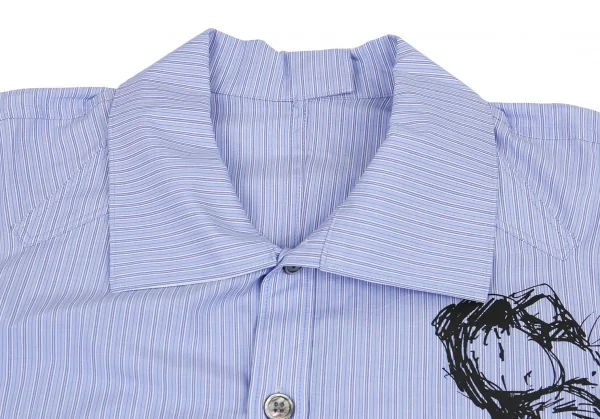 ヨウジヤマモト プールオムYohji Yamamoto POUR HOMME ストライプデッサンプリントロングシャツ 水色3