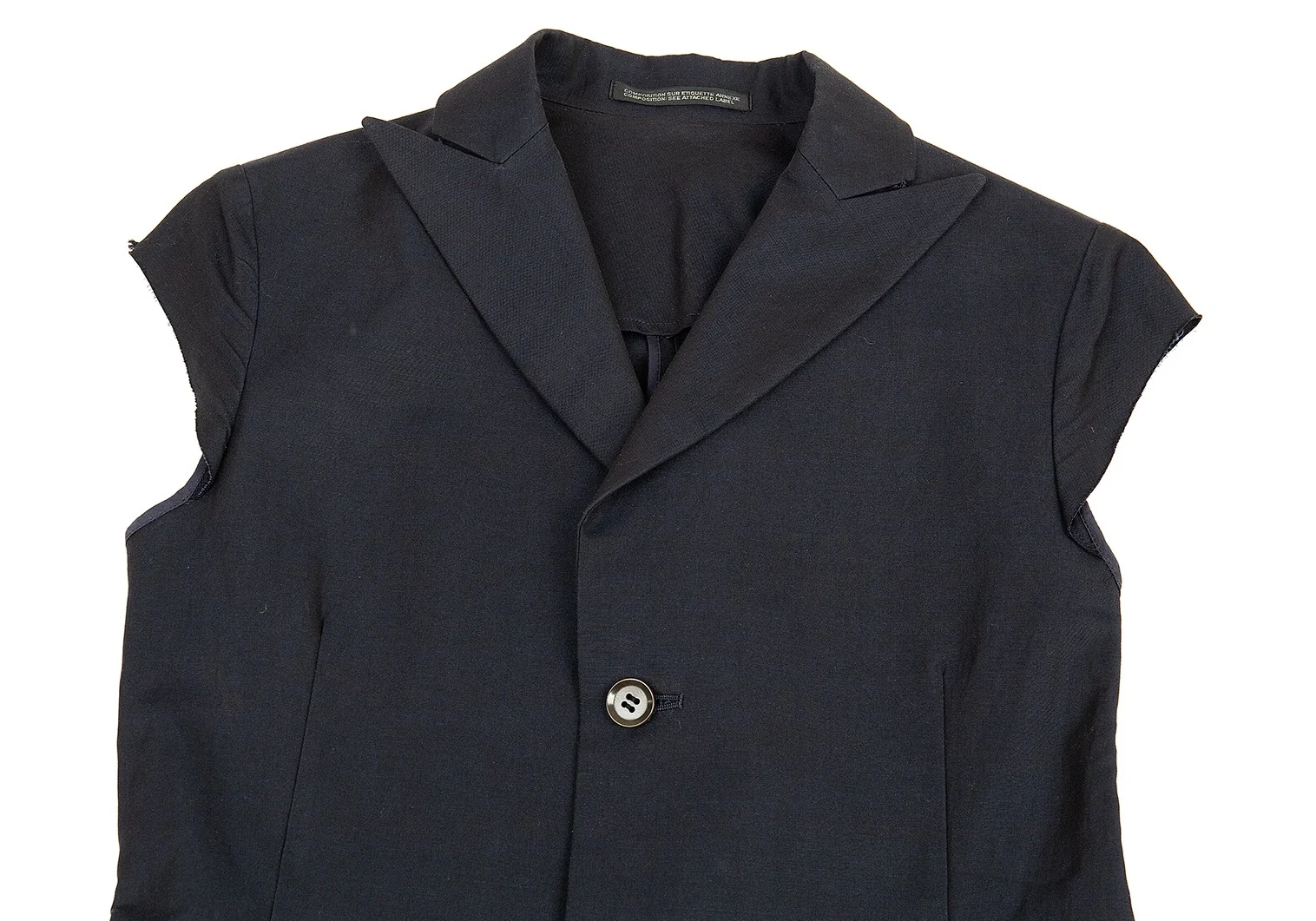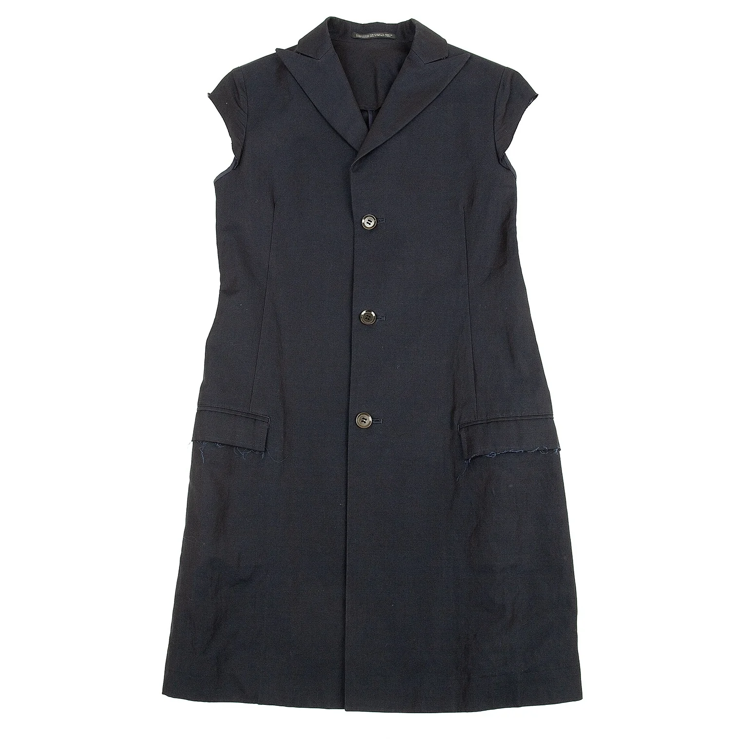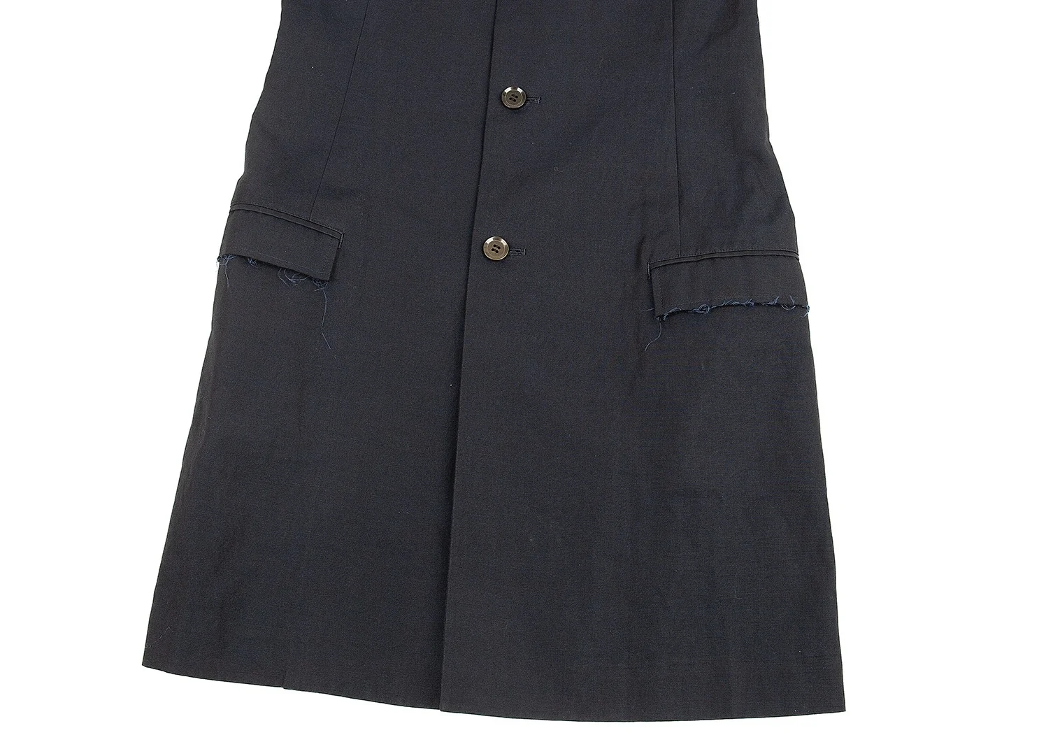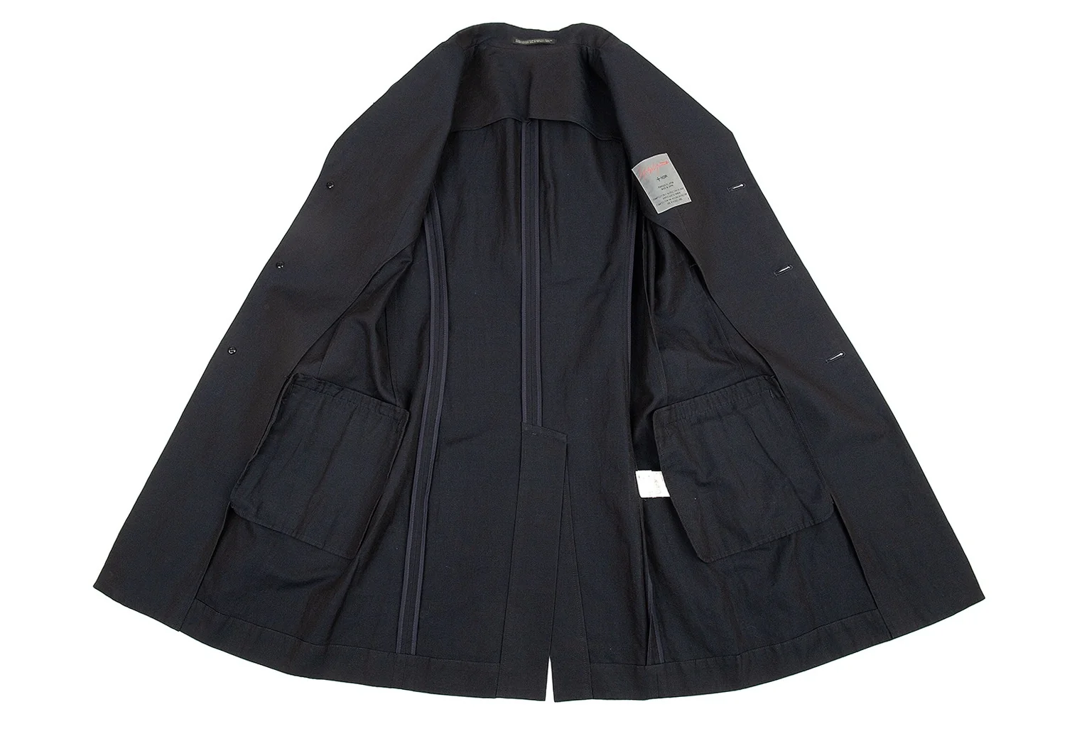ヨウジヤマモト ノアールYohji Yamamoto NOIR コットンリネンフレンチスリーブピークドラペルロングジャケット 紺1