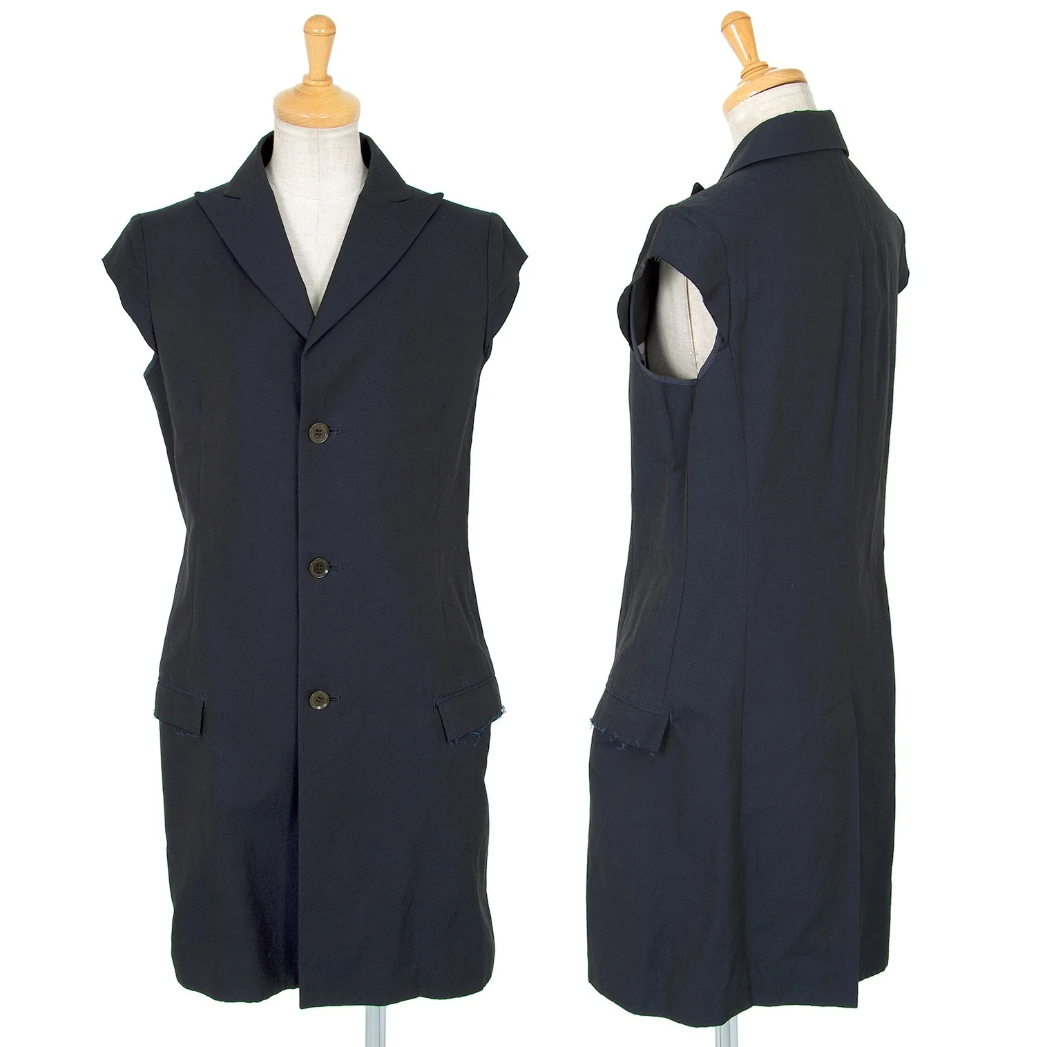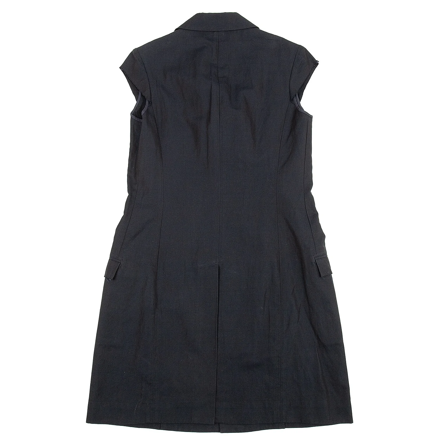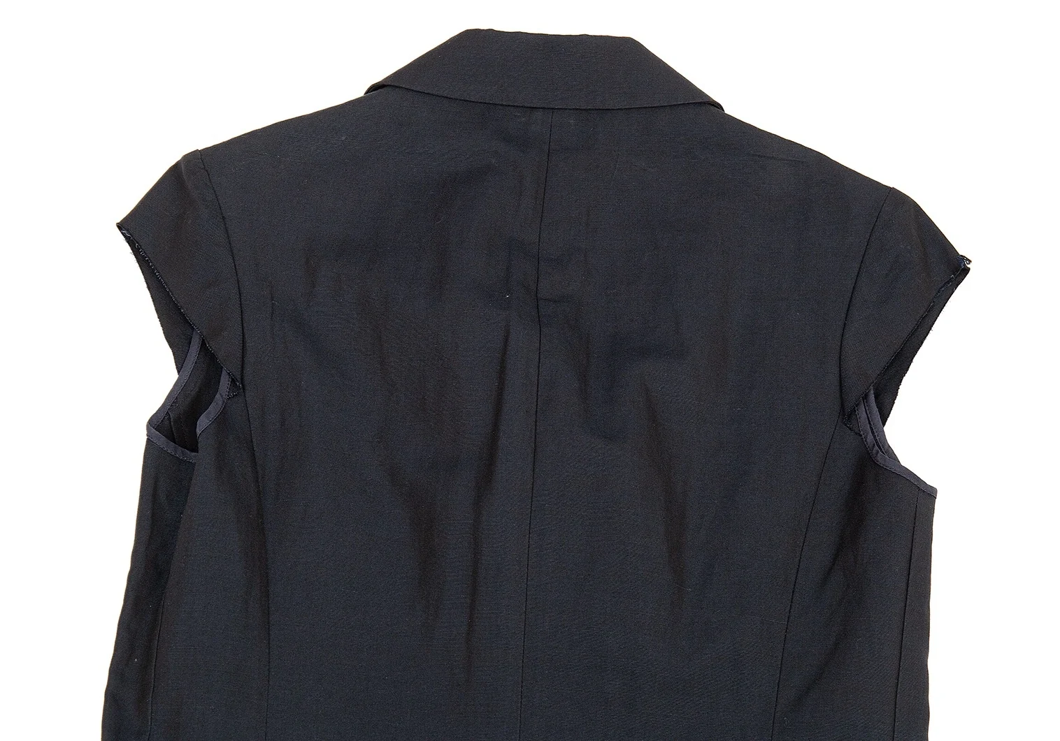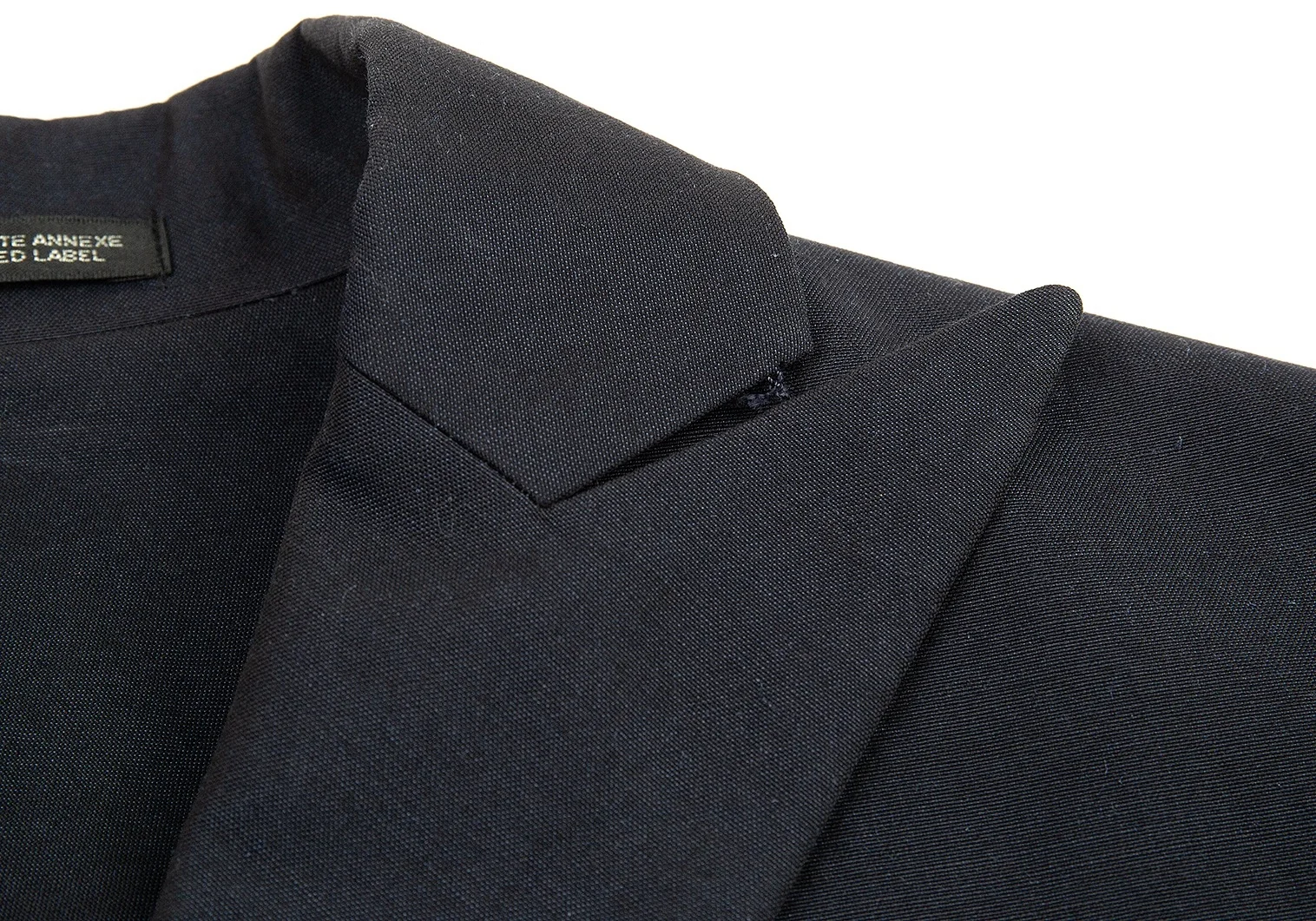 ヨウジヤマモト ノアールYohji Yamamoto NOIR コットンリネンフレンチスリーブピークドラペルロングジャケット 紺1