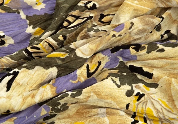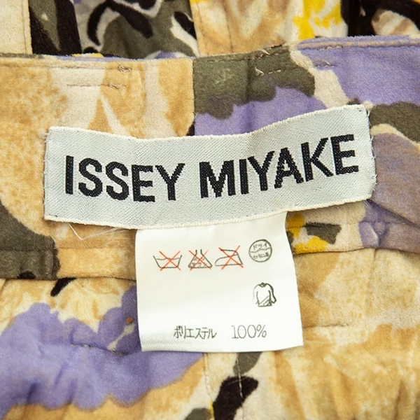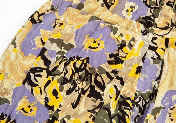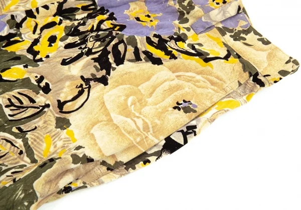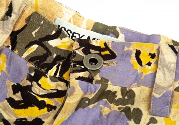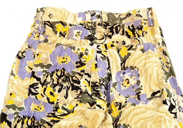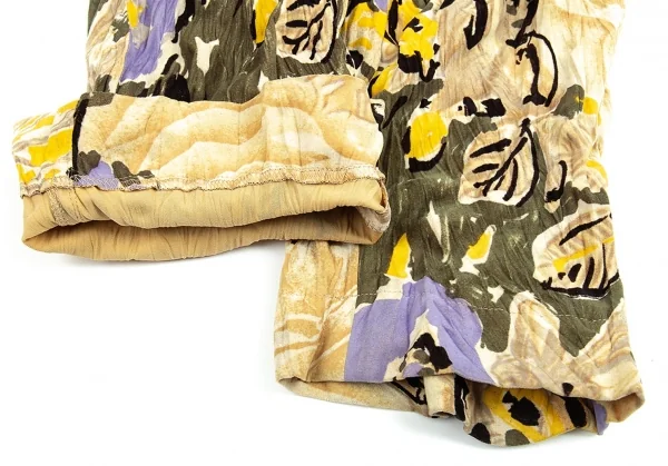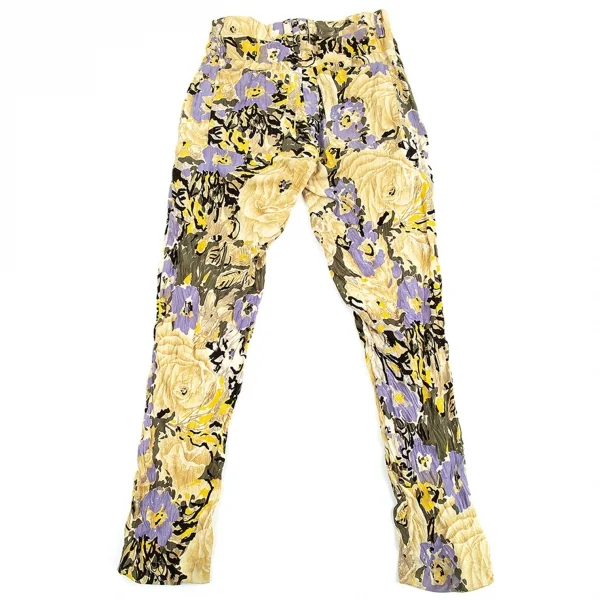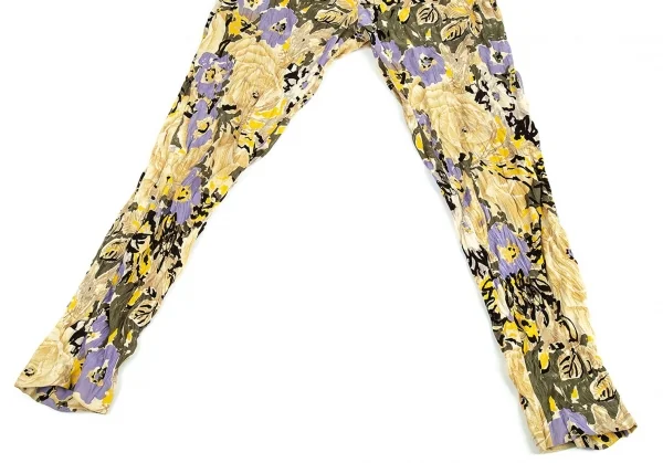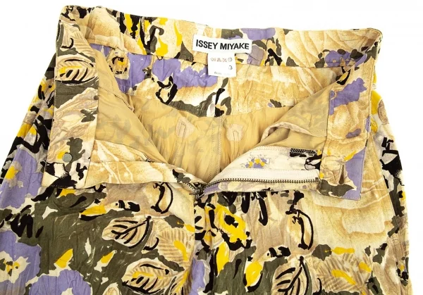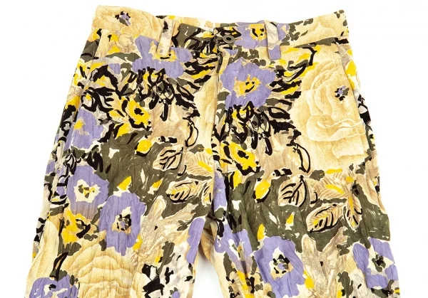 イッセイミヤケISSEY MIYAKEベロアシワ加工フラワープリントパンツ ベージュマルチM