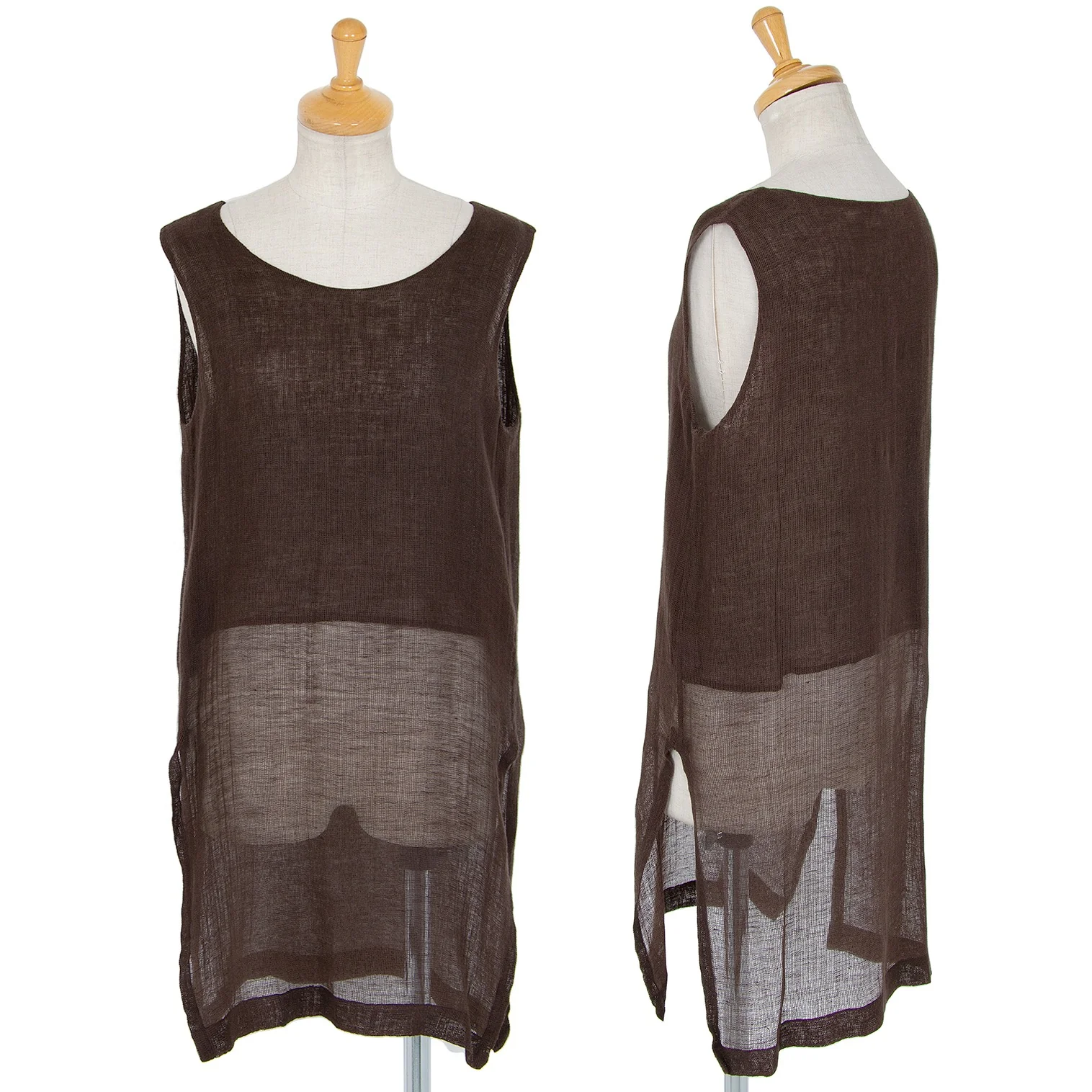 イッセイミヤケペルマネンテISSEY MIYAKEPERMANENTE リネンローゲージレイヤータンクトップチュニック 茶M