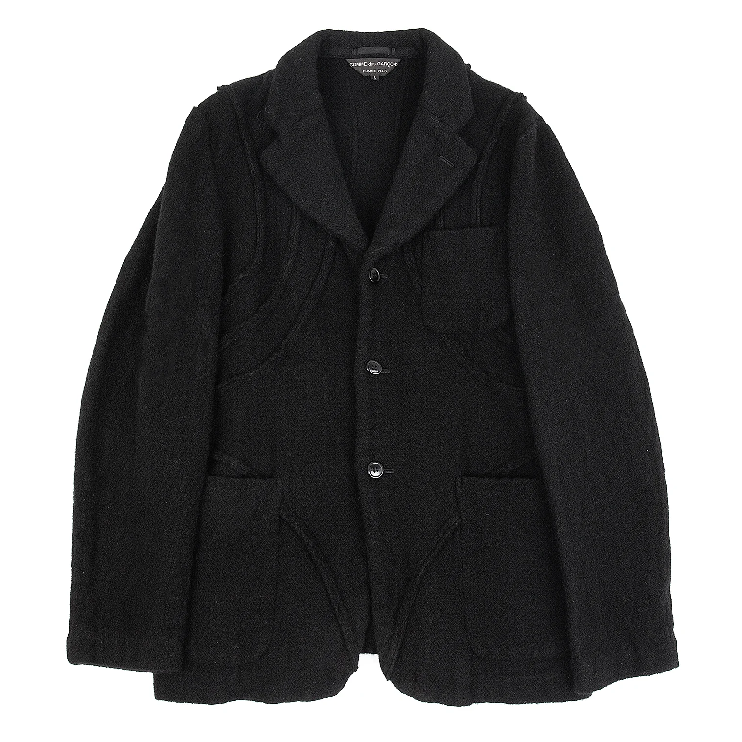 コムデギャルソン オムプリュスCOMME des GARCONS HOMME PLUS ウール製品染めカーブ切替ジャケット 黒L