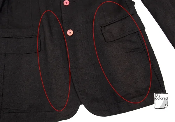 品質表示タグに少し劣化があります。ジャケット:前後左袖・袖先・袖裏・前裾にヤケ、裏地に薄汚れがあります。パンツ:右足に薄くヤケ、ヒップに若干のテカリがあります(画像参照)。その他目立ったシミ、汚れ、ほつれ等ありません。クリーニング済み