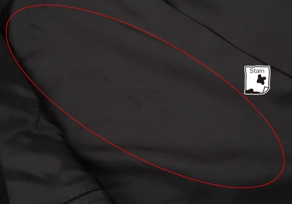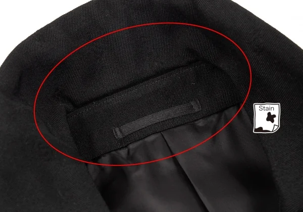 肩パッドあり。首裏に薄汚れ、裏地に薄シミ・小穴があります(画像参照)。その他目立ったシミ、汚れ、ほつれ等なくいい状態です。クリーニング済み