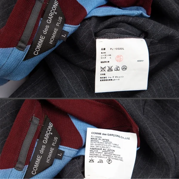 2001S/Sコレクション着用アイテムです(裏側で着用)。ジャケット:襟裏に薄汚れ、裏側の所々に画像のような変色があります・目立ったシミ、汚れ、ほつれ等なくいい状態です。クリーニング済み