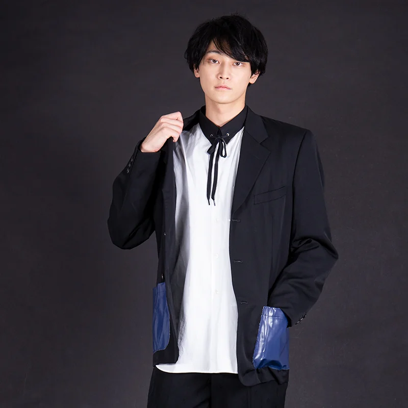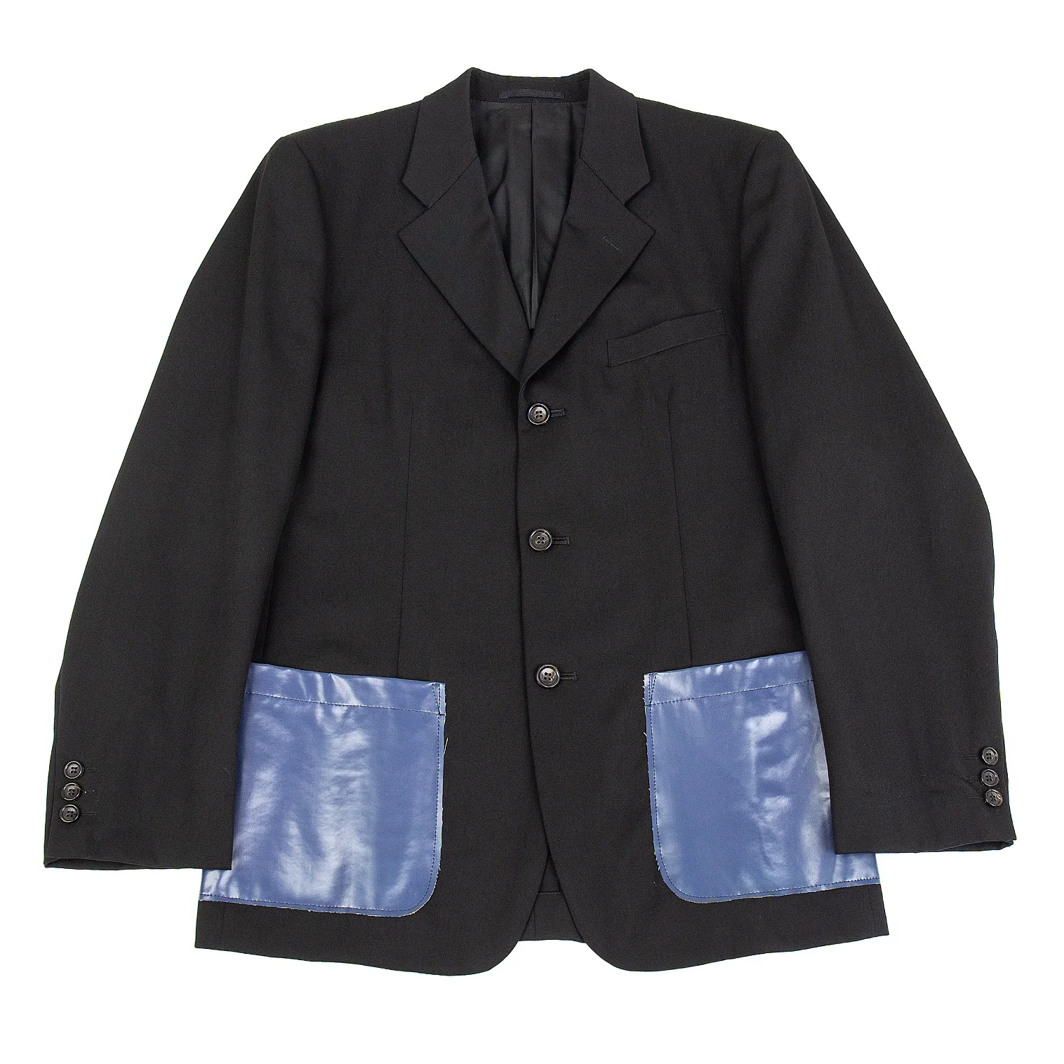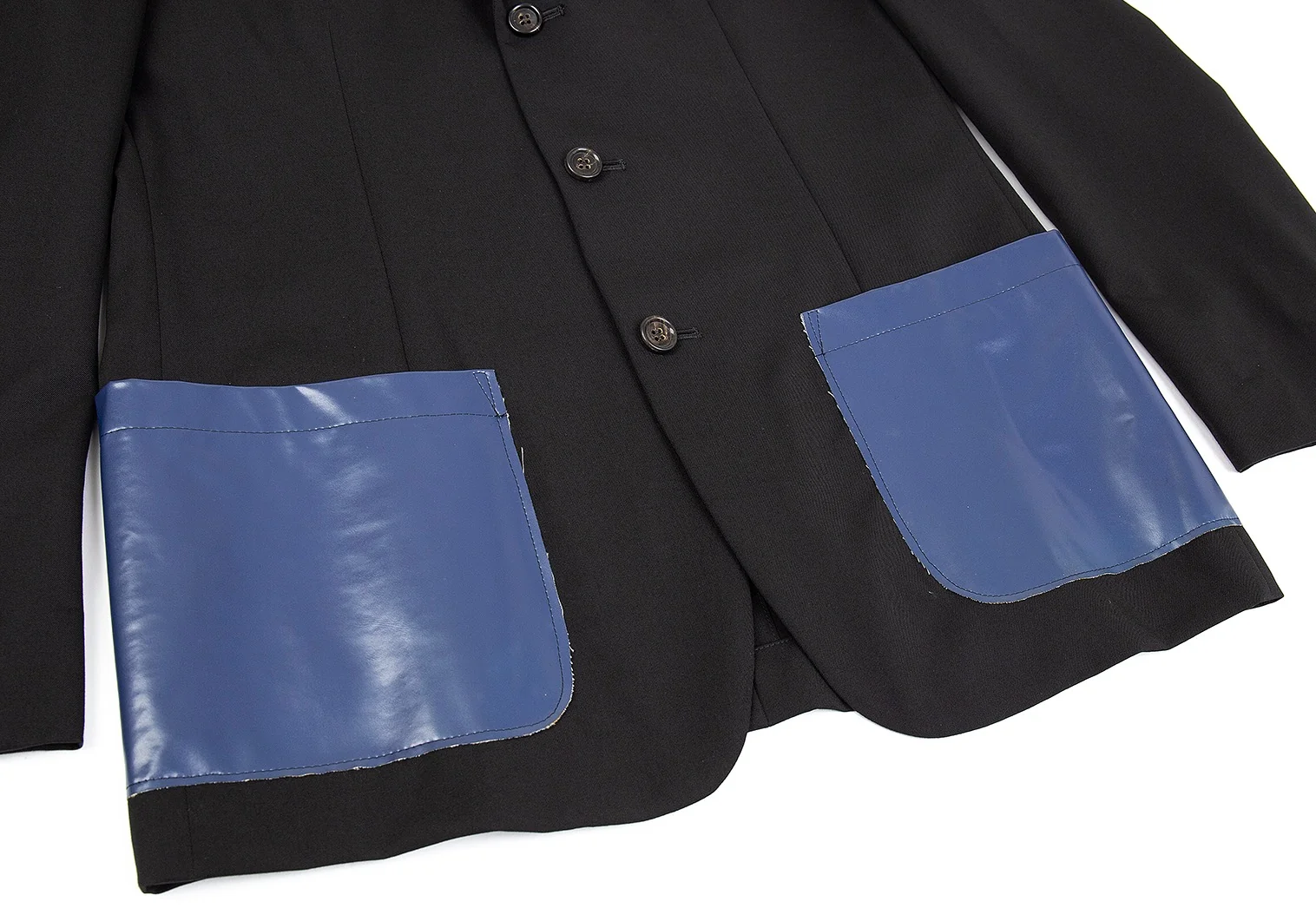 コムデギャルソン オムプリュスCOMME des GARCONS HOMME PLUS ウールギャバフェイクレザーパッチポケットジャケット 黒M