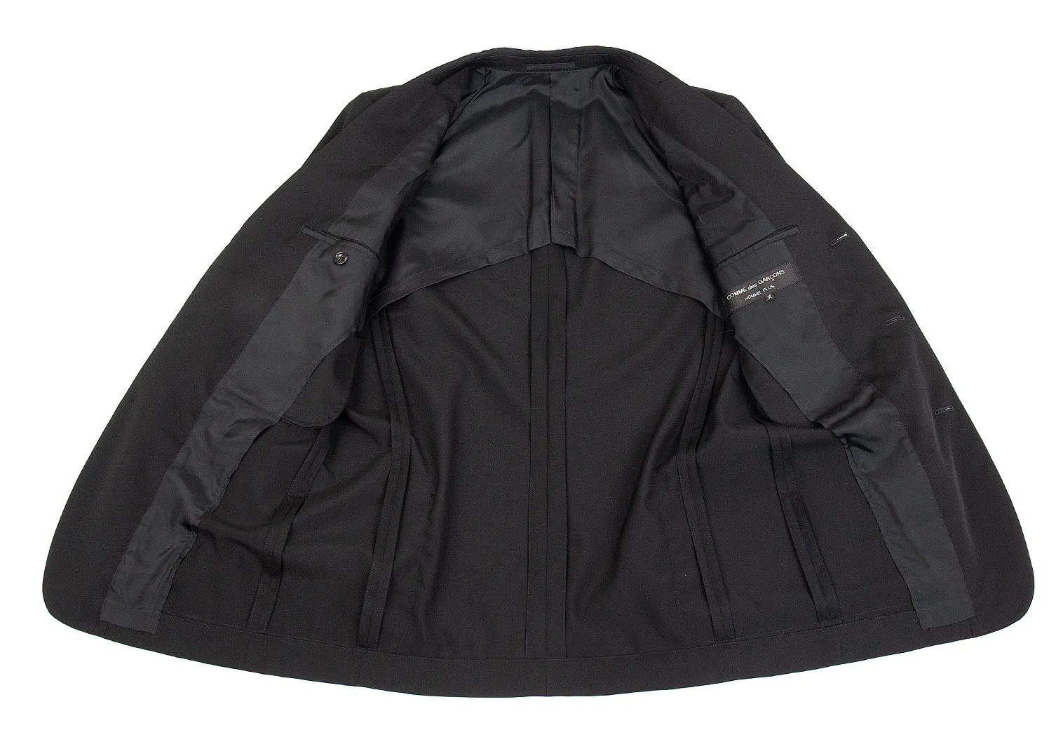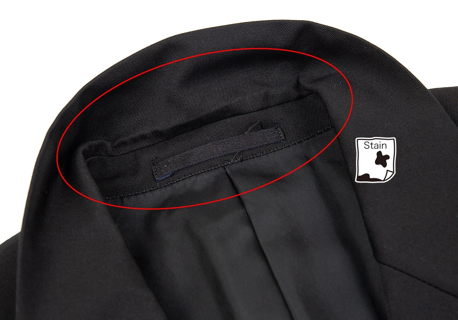 肩パッドあり。首裏・袖裏に薄汚れ、左ポケットに少し変色があります(画像参照)。その他目立ったシミ、汚れ、ほつれ等ありません。クリーニング済み