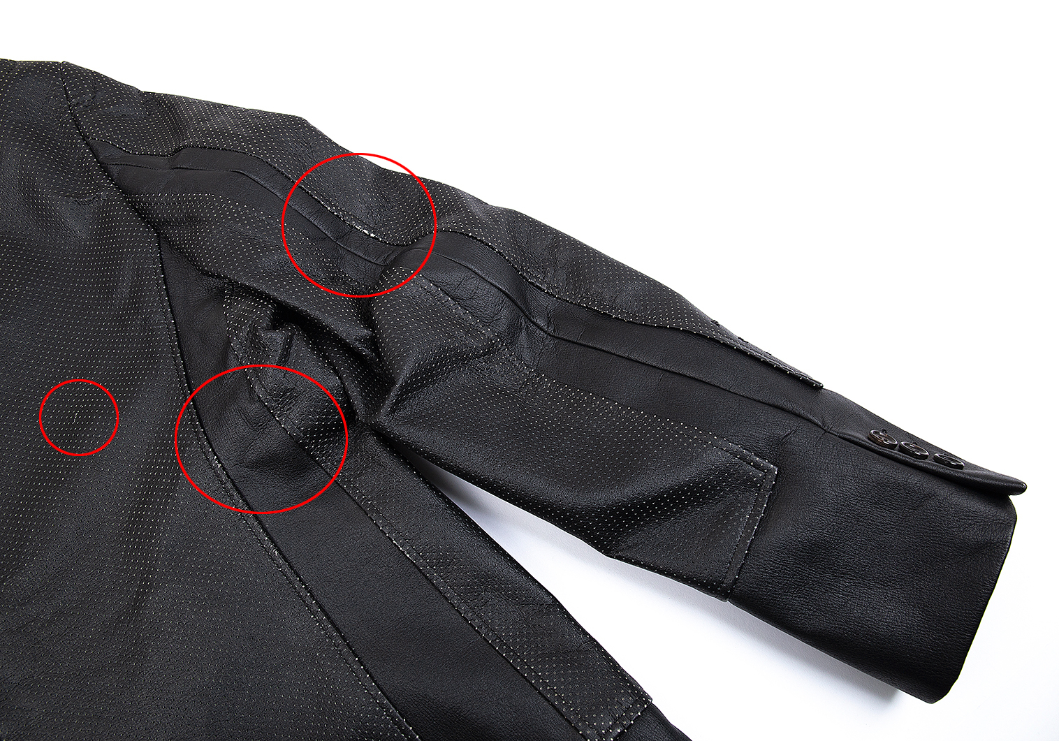 左袖先、後ろに擦れキズがあります(写真参照)。その他に目立ったシミ、汚れ、ほつれ等なくいい状態です。クリーニング済み